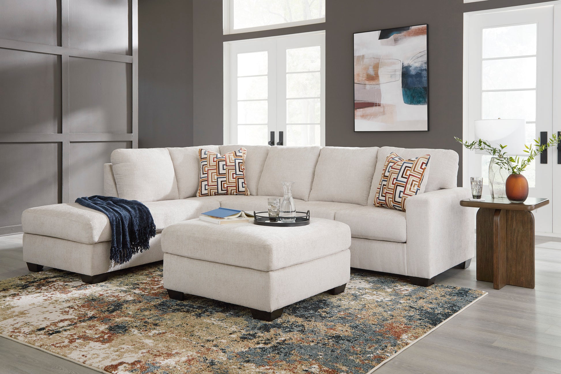If style is the question, then the ottoman is the answer. Its decidedly contemporary profile is enhanced with plump cushioning and a chenille-feel upholstery that's so pleasing to the touch. Rest assured, this ottoman in slate gray is sure to play well with so many color schemes.