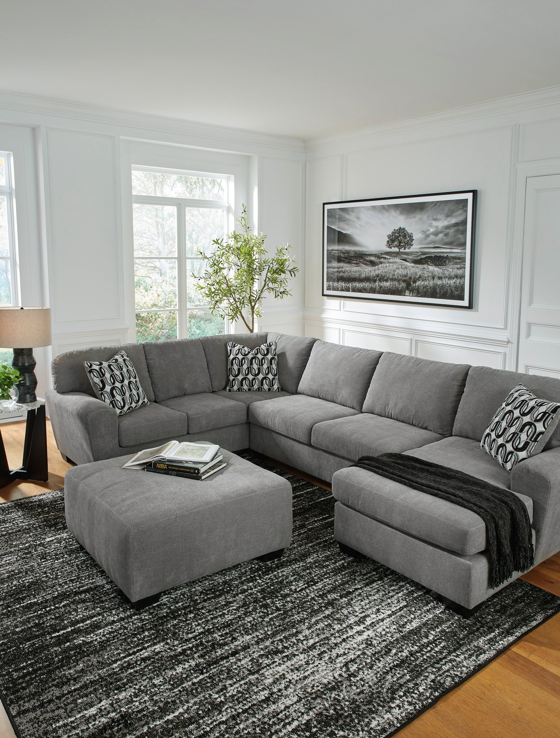 If style is the question, then the ottoman is the answer. Its decidedly contemporary profile is enhanced with plump cushioning and a chenille-feel upholstery that's so pleasing to the touch. Rest assured, this ottoman in slate gray is sure to play well with so many color schemes.
