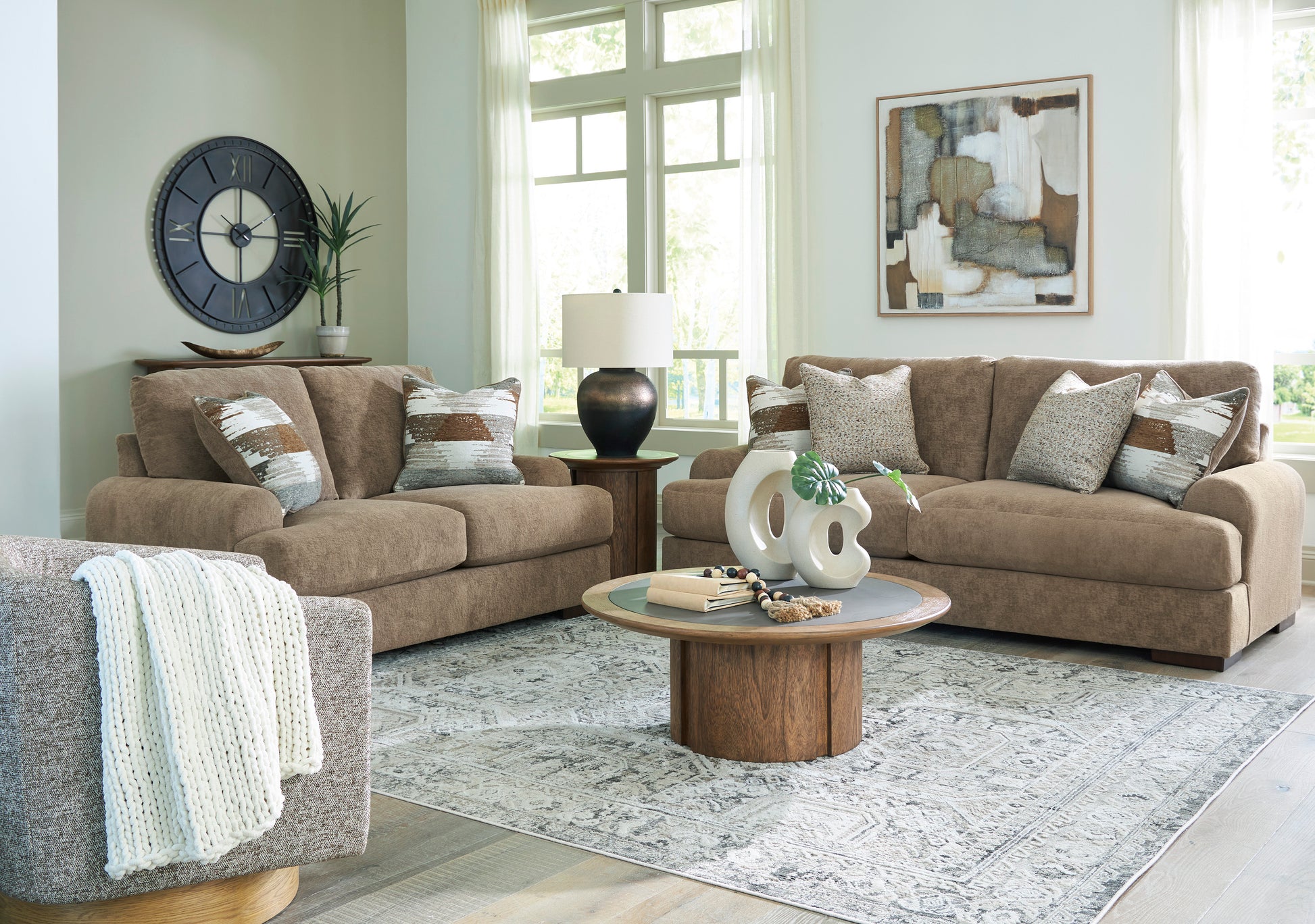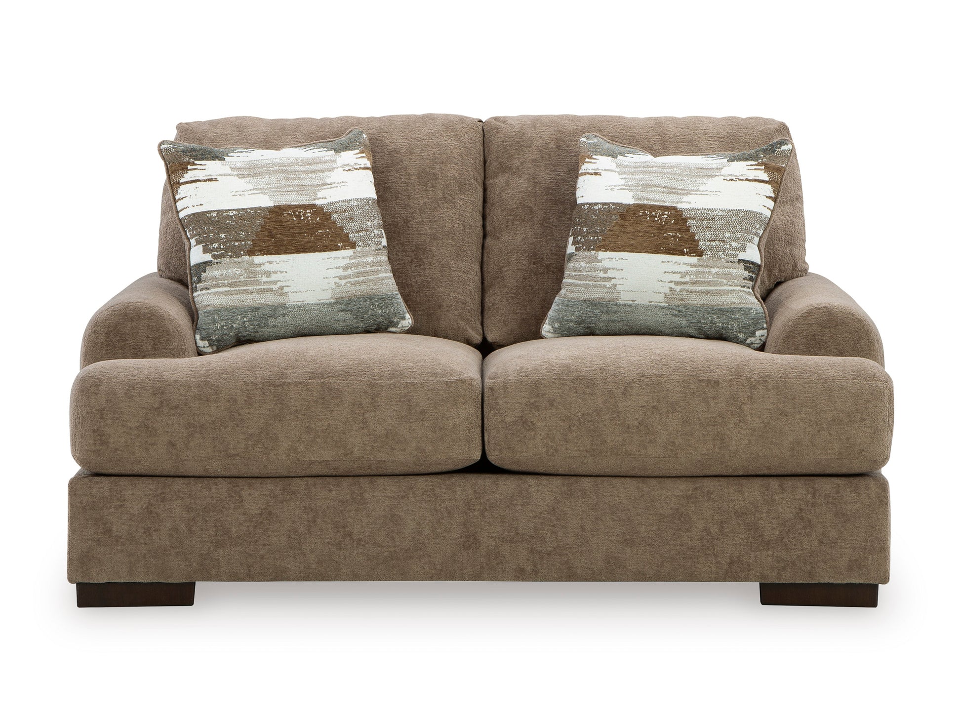 Need a piece to perfectly anchor your home's casual contemporary aesthetic? The pinnacle of chic comfort, the Nolenburg Sofa Set has a universal appeal thanks to plush chenille upholstery in a neutral hue. Its simple, streamlined design, with wide party arms, is sure to appeal to your relaxed approach to modern flair. Boldly patterned accent pillows complete the look. All that's left for you to do is sprawl out solo or with friends and revel in the feeling of style made simple.