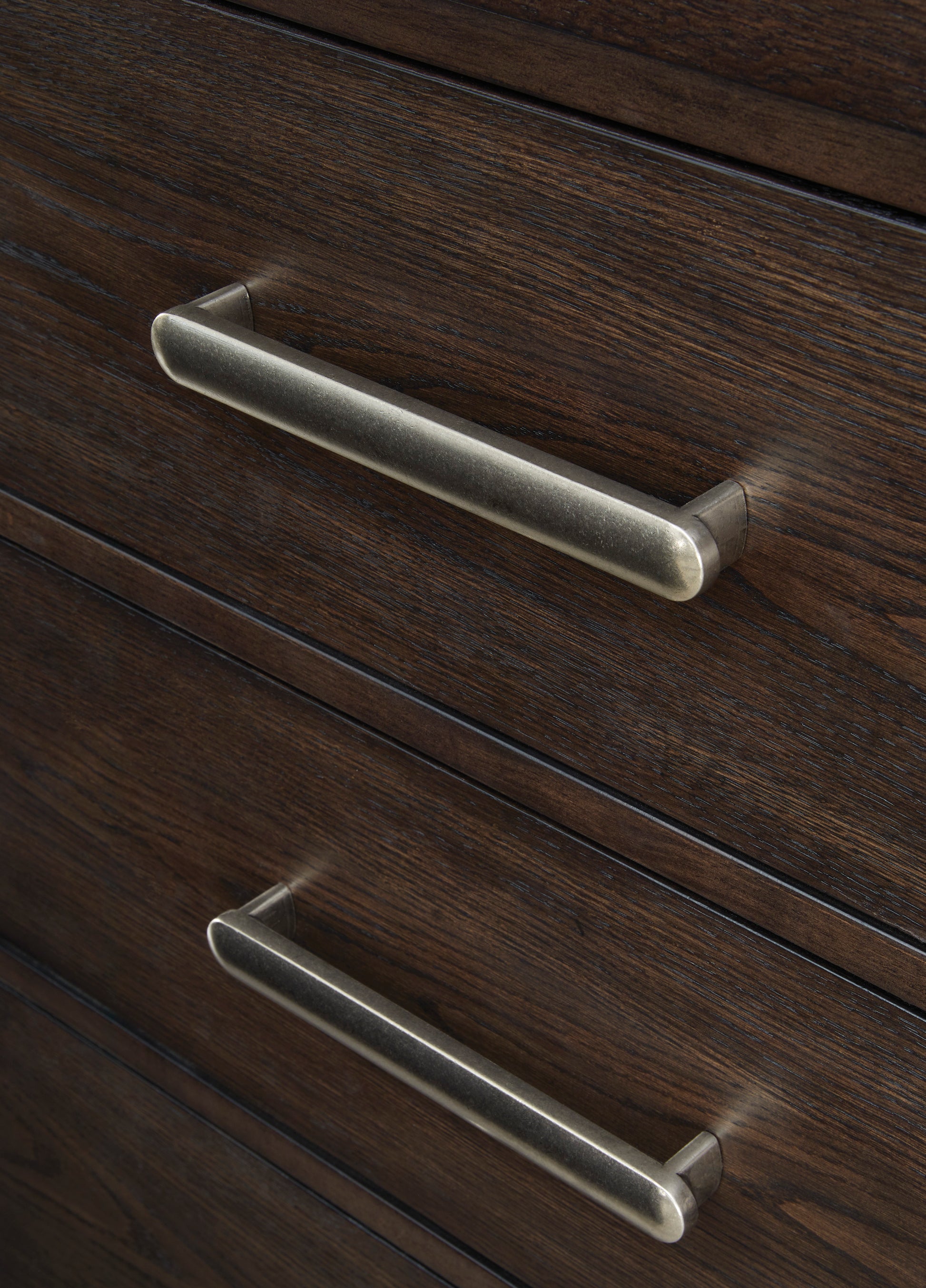 • Finished in a dark brown wood-tone with rich dark grain contrast
