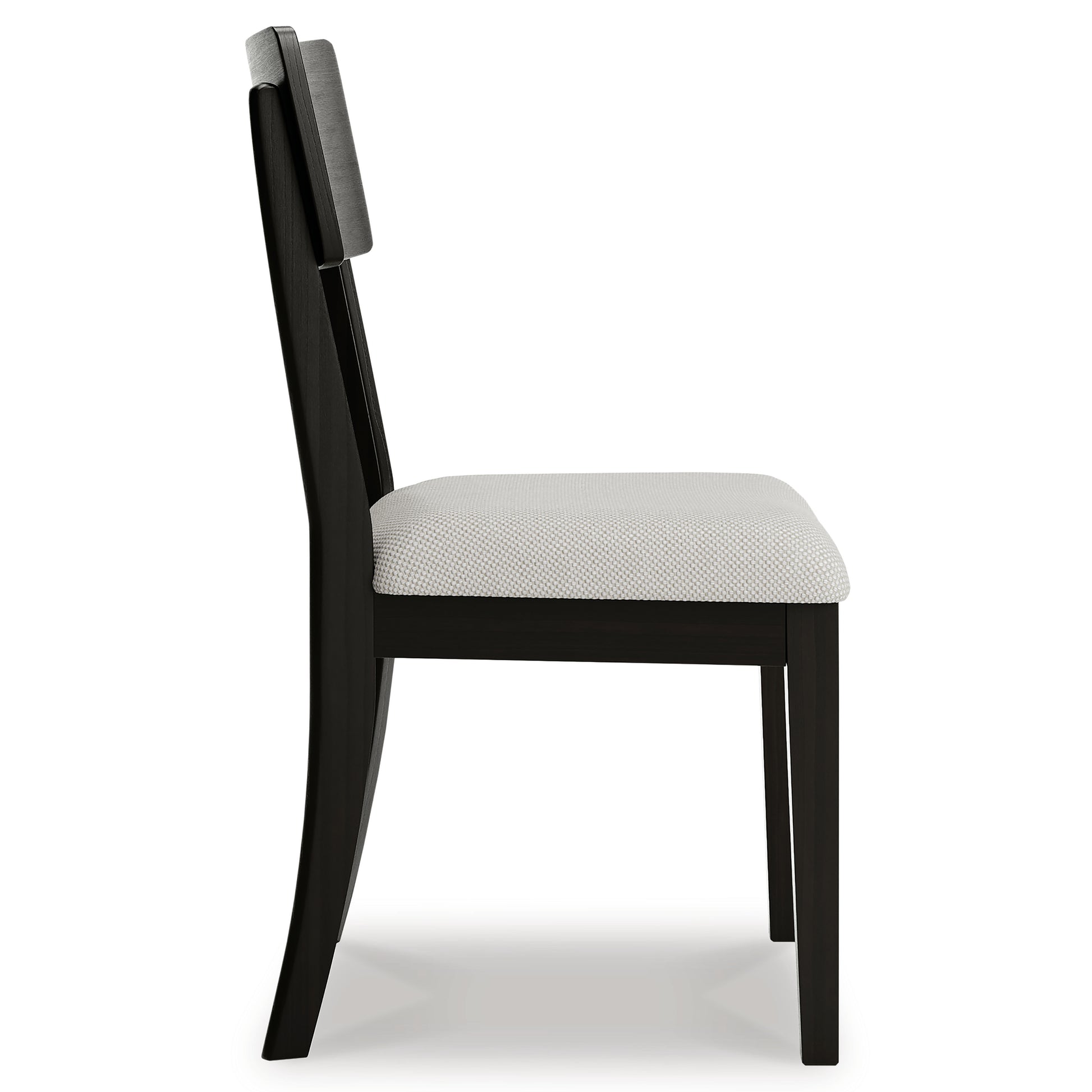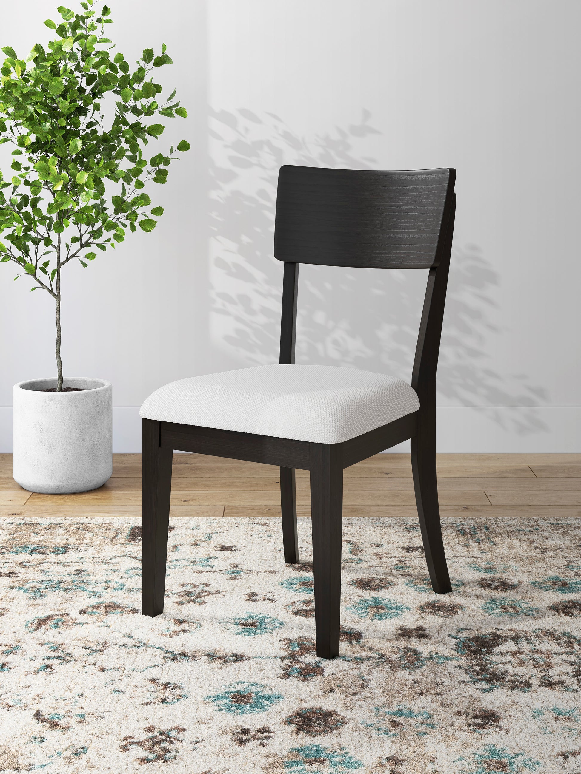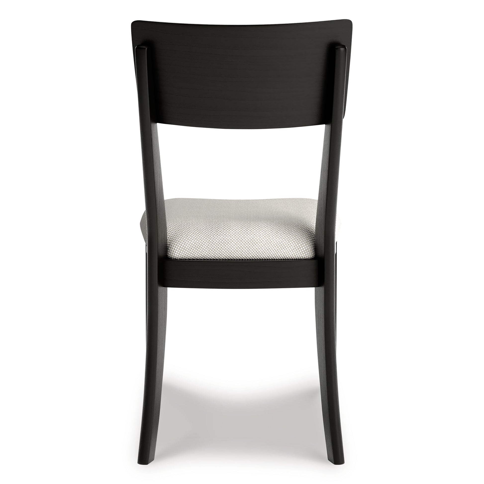 • Upholstered dining chair is covered with a beige colored Next-Gen Nuvella performance