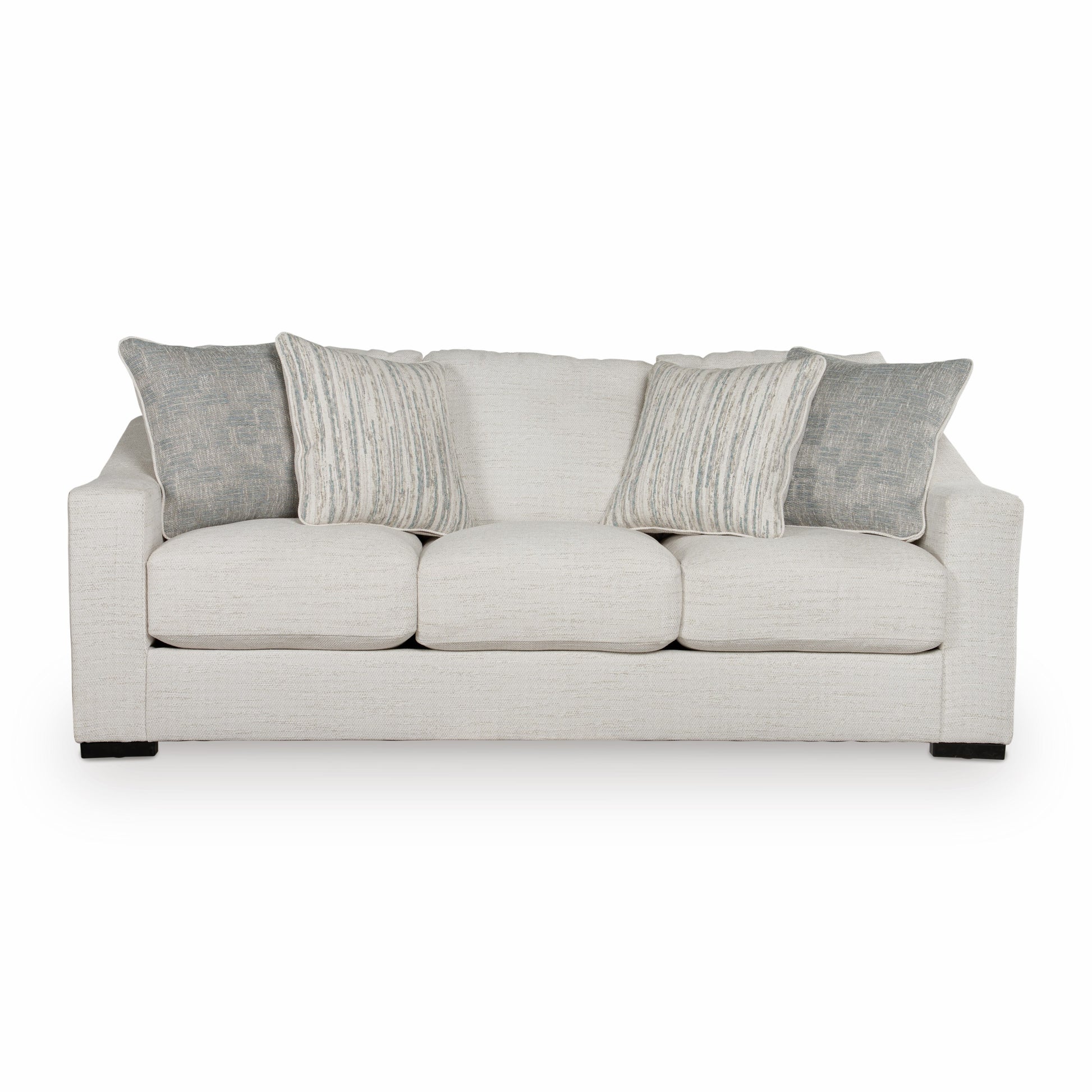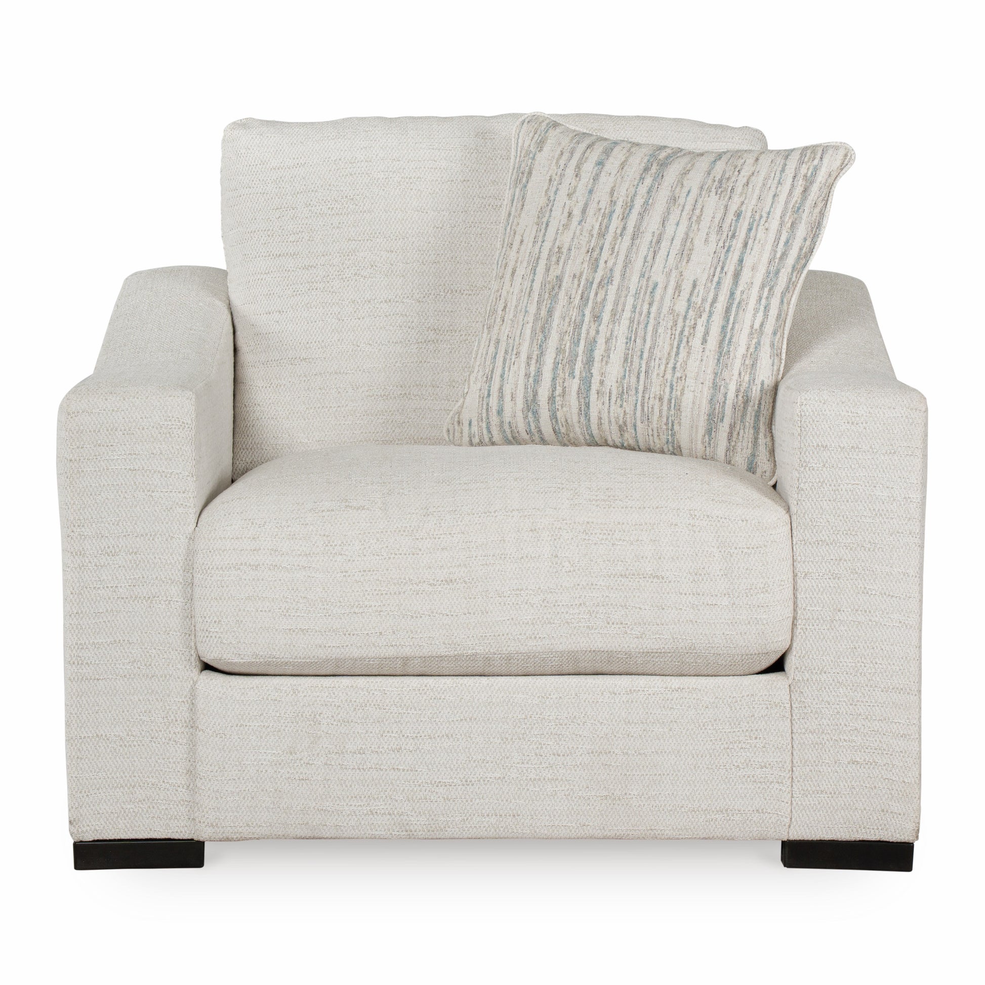 gets a contemporary chic upgrade. Its sleek slope arms and soft neutral upholstery are so