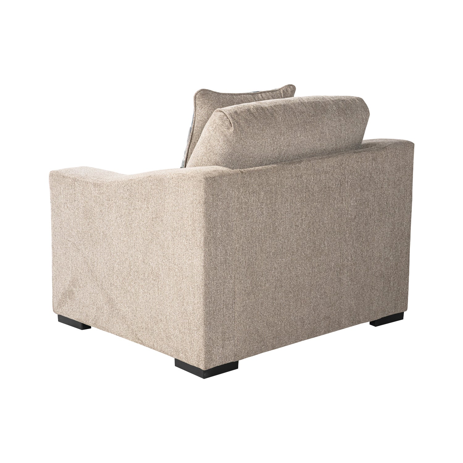 يحصل على ترقية أنيقة معاصرة. أذرعها المنحدرة الأنيقة والمفروشات المحايدة الناعمة هي كذلك