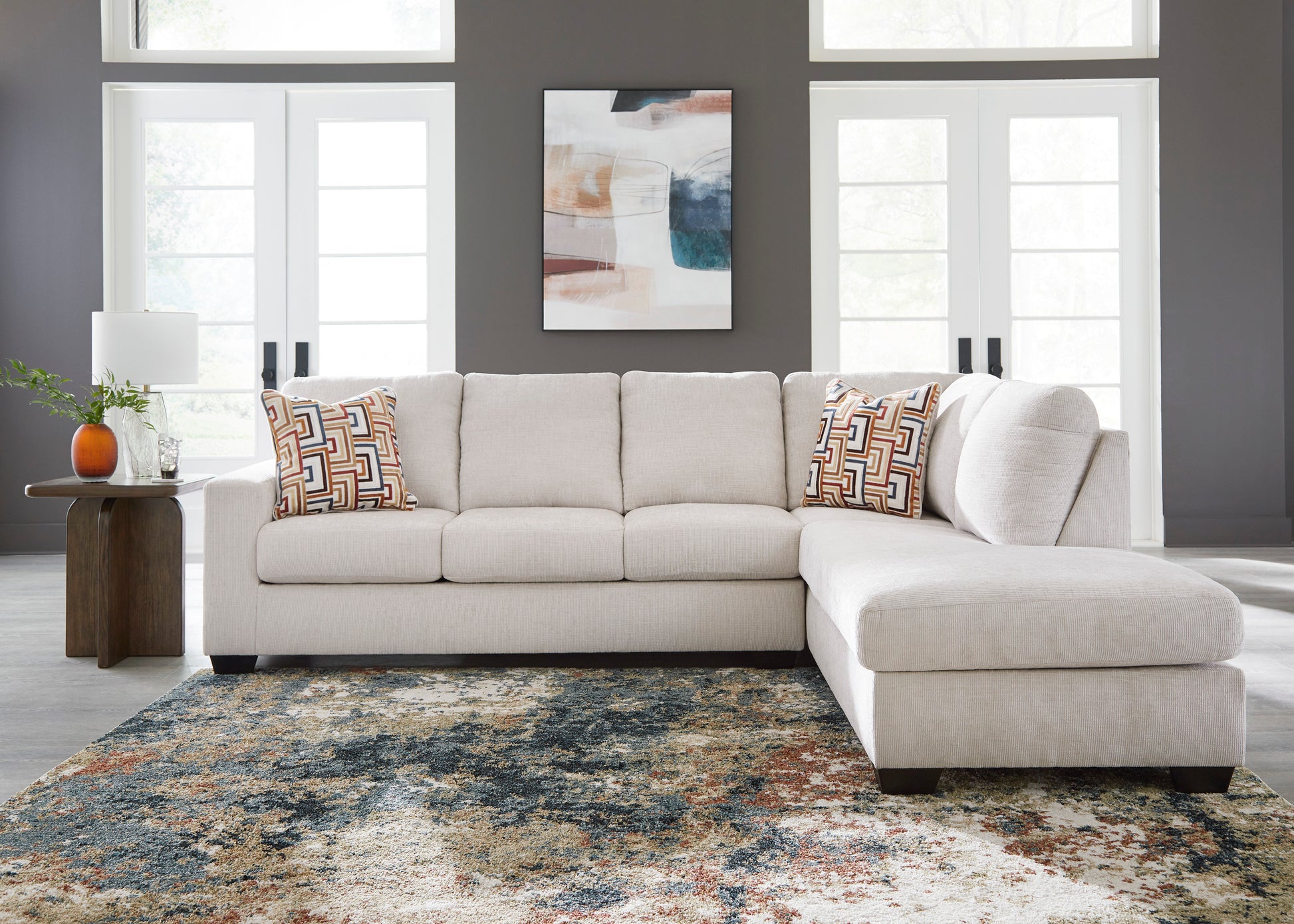 Looking to make a simply chic statement with color? Liven up your living room with the Aviemore sectional with chaise. Its trend-right light neutral upholstery is a perfect blank canvas for adding pops of color. Bold and eclectic accent pillows complete the look. Pairing posh style with everyday comfort, this sectional is a welcome addition to contemporary spaces.
