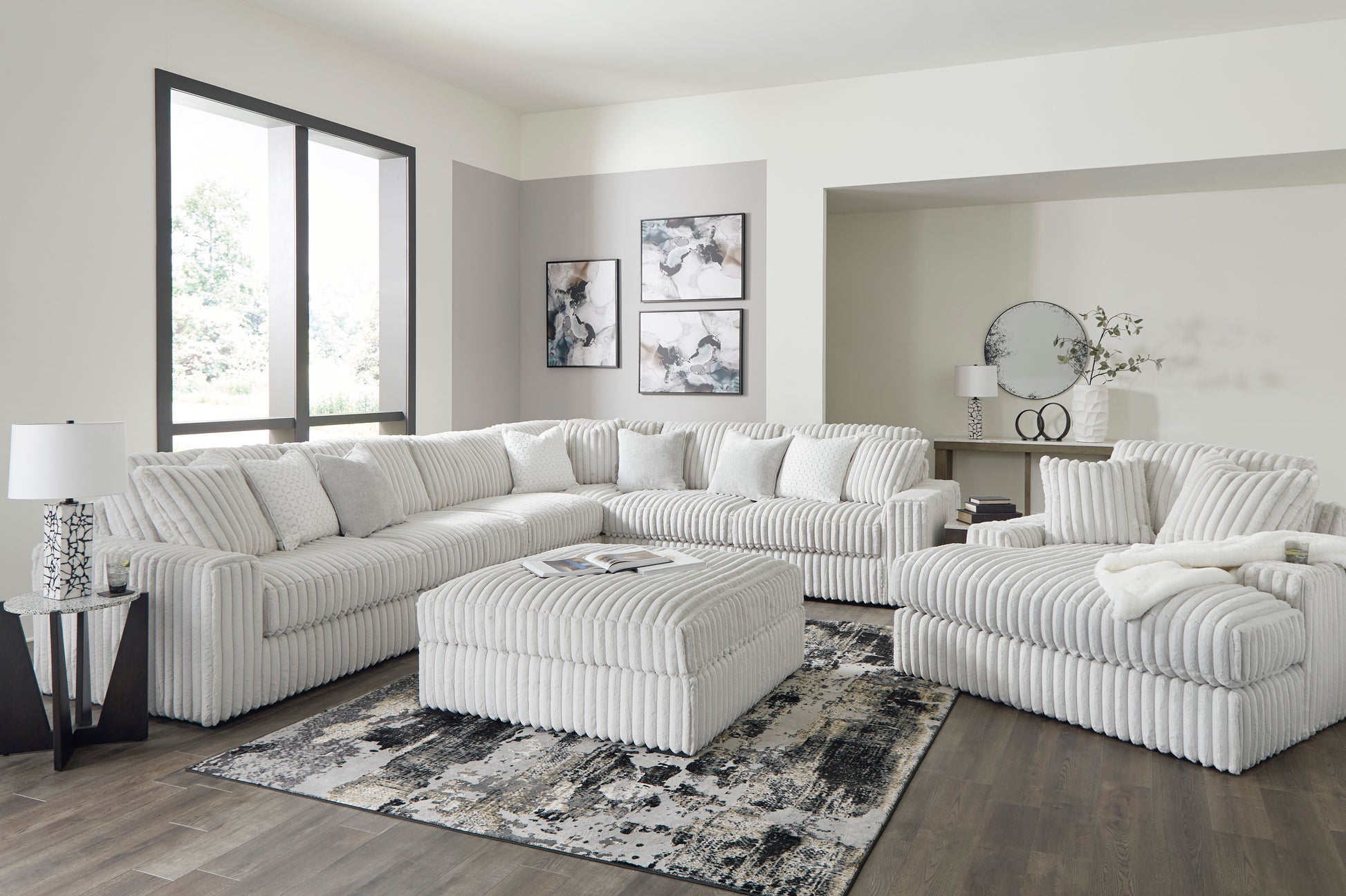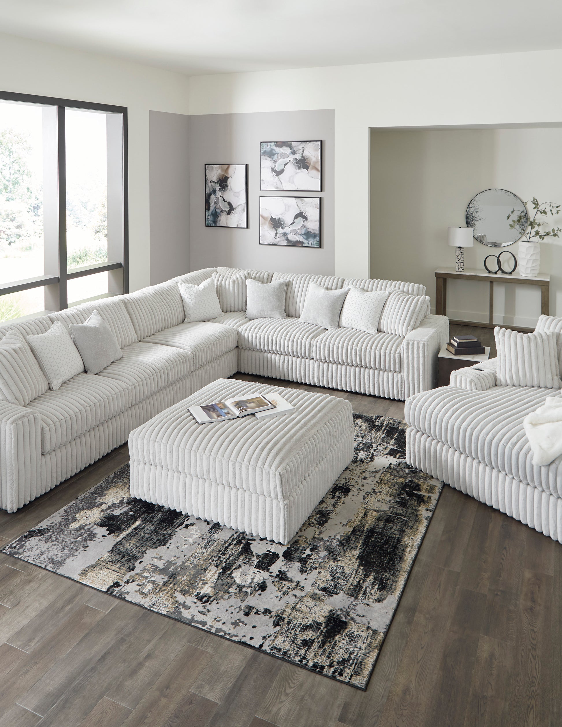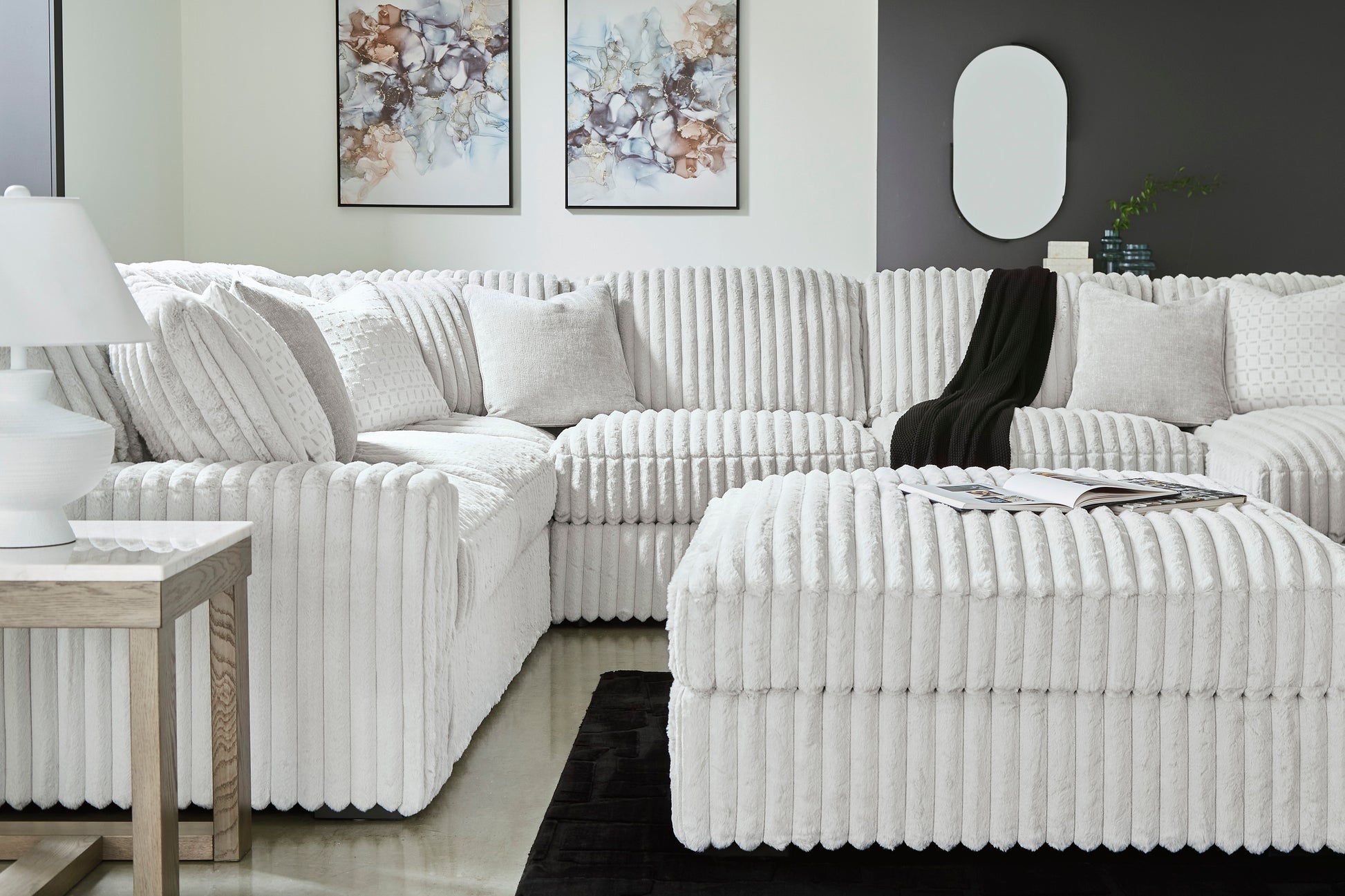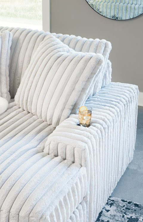 Don€™t want to sacrifice standout style for majorly cozy seating? The Stupendous sectional pairs bold character with sink-in comfort. Its retro-cool jumbo cord over feather-blend cushions creates a luxuriously soft lounging experience. With this sectional, you can balance everyday relaxation and your unique eye for design.