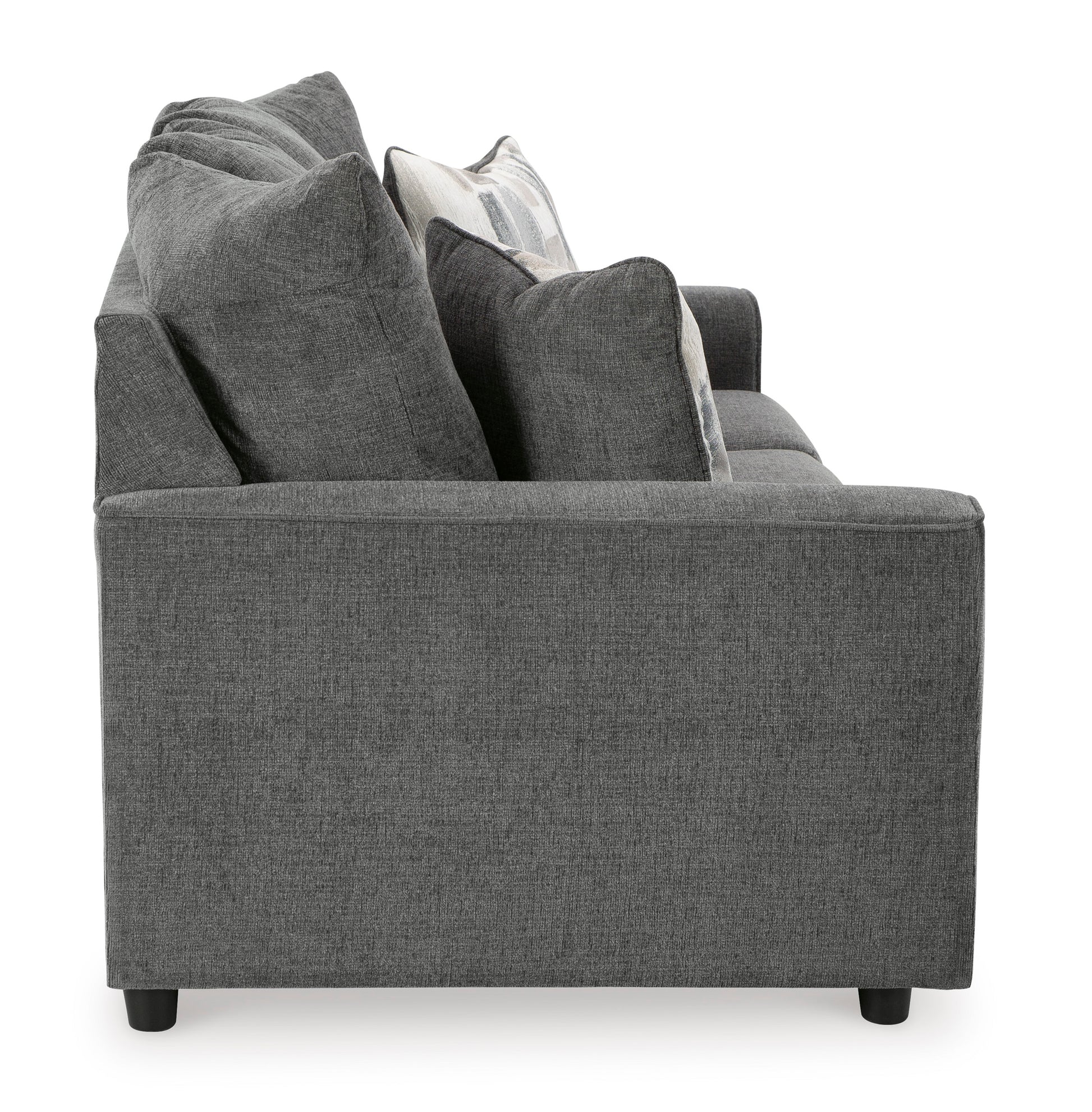 What€™s new in neutrals? Shades of gray, of course. Embrace this sophisticated design trend with the gorgeous Stairatt Sofa set, which offers a clean-lined, contemporary style at a comfortably cool price. Sure to lift your spirits, the plush chenille fabric is fabulously neutral. Modern flared arms give it a distinctive flair. This Sofa also arrives with two cool brushstroke accent pillows to elevate the taste and comfort level.Corner-blocked frame