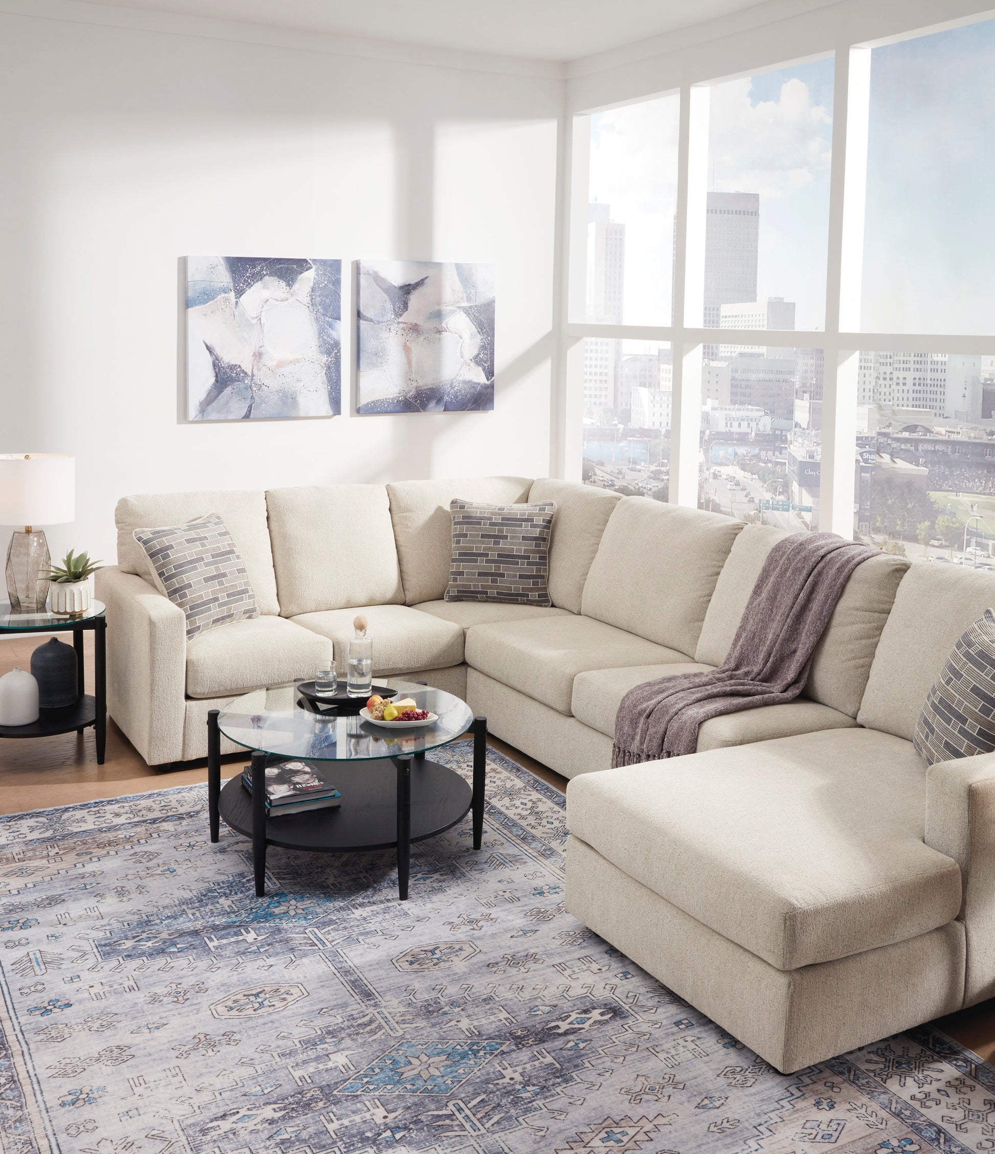 Contemporary fashion, meet superior form. The Edenfield sectional with chaise is strikingly streamlined with its track arms. Cozy cushions invite superior relaxation, while fresh linen-look upholstery speaks to tried-and-true modern color palettes. Simply kick back, relax and settle into the calm of your curated space.