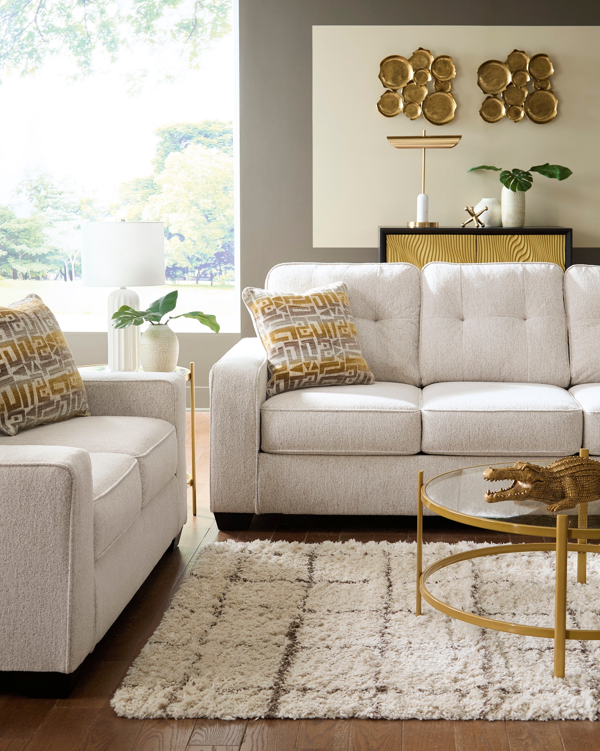 Sincere in its styling, the Storrow Sofa set marries classic function with modern design elements for truly transitional appeal. Its track arms lend a contemporary vibe while soft, durable upholstery ups the comfort level. And with the Sofa's goes-with-anything neutral color, styling is made simple. All that€™s left for you to do is to sit back and relax.Corner-blocked frame
