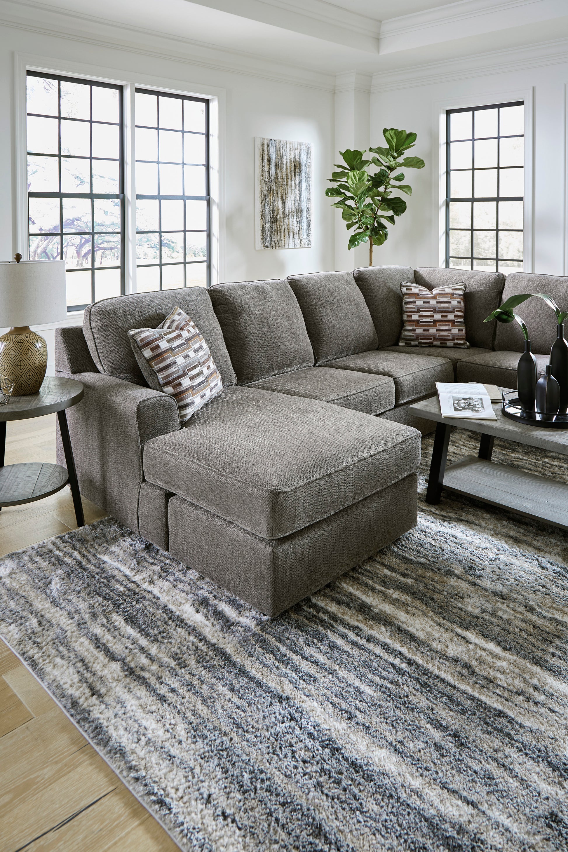 Complete your at-home retreat with the casually chic O€™Phannon sectional with chaise. The luxe herringbone chenille upholstery is indulgently plush to the touch. With its clean-lined construction, this sectional seamlessly pairs with contemporary aesthetics, making it an ideal centerpiece for your curated space.