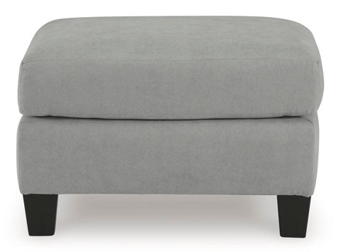 If style is the question, then the ottoman is the answer. Its decidedly contemporary profile is enhanced with plump cushioning and a chenille-feel upholstery that's so pleasing to the touch. Rest assured, this ottoman in slate gray is sure to play well with so many color schemes.