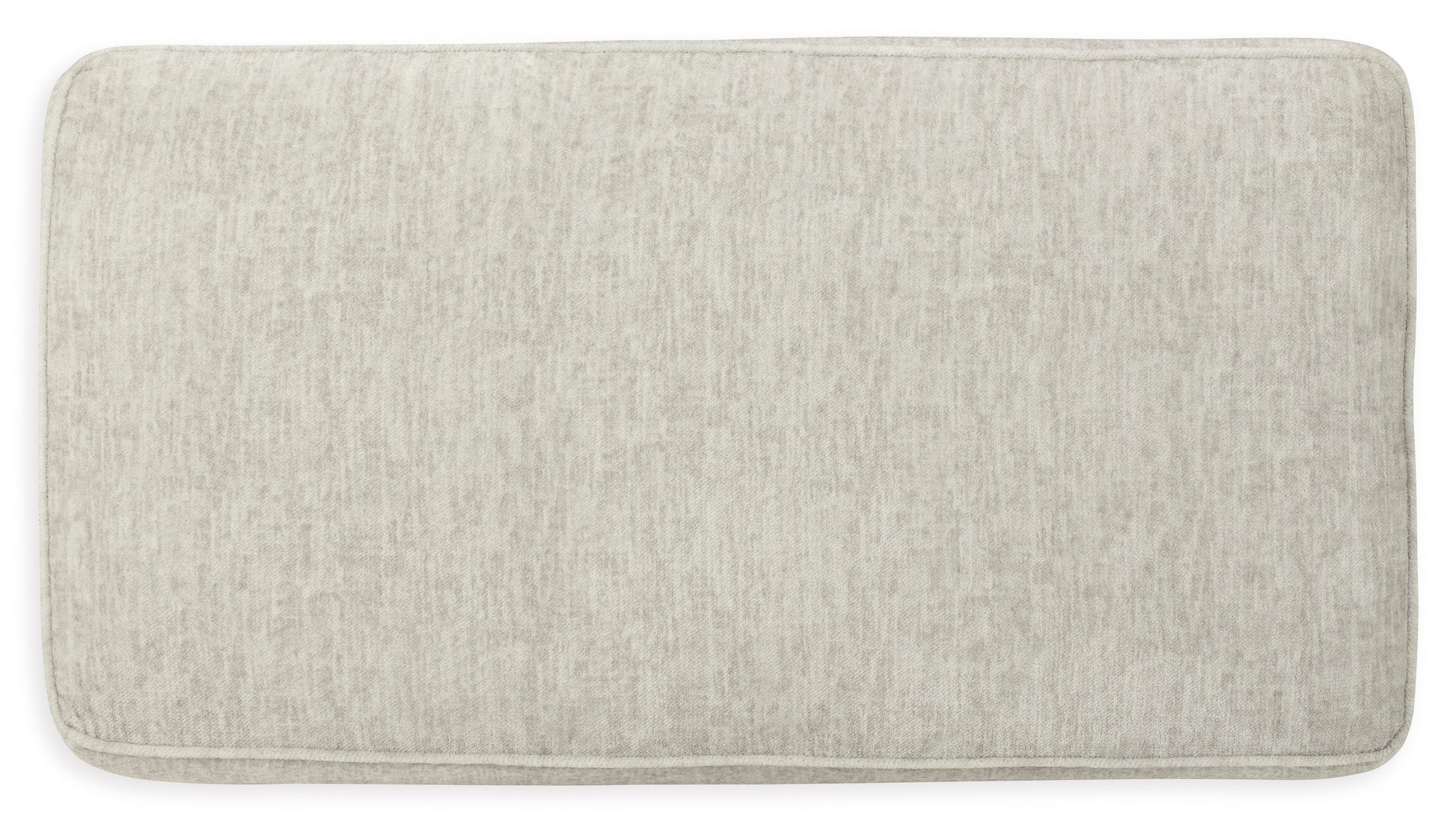 Decidedly modern with a sense of relaxed ease, the Alesandra Ottoman looks at home in so many different places and spaces. Sporting a subtle chevron texture, the parchment-tone upholstery takes neutral to new heights. Providing a highly distinctive look: low-to-the-floor block feet in a warm wood-tone finish.Corner-blocked frame