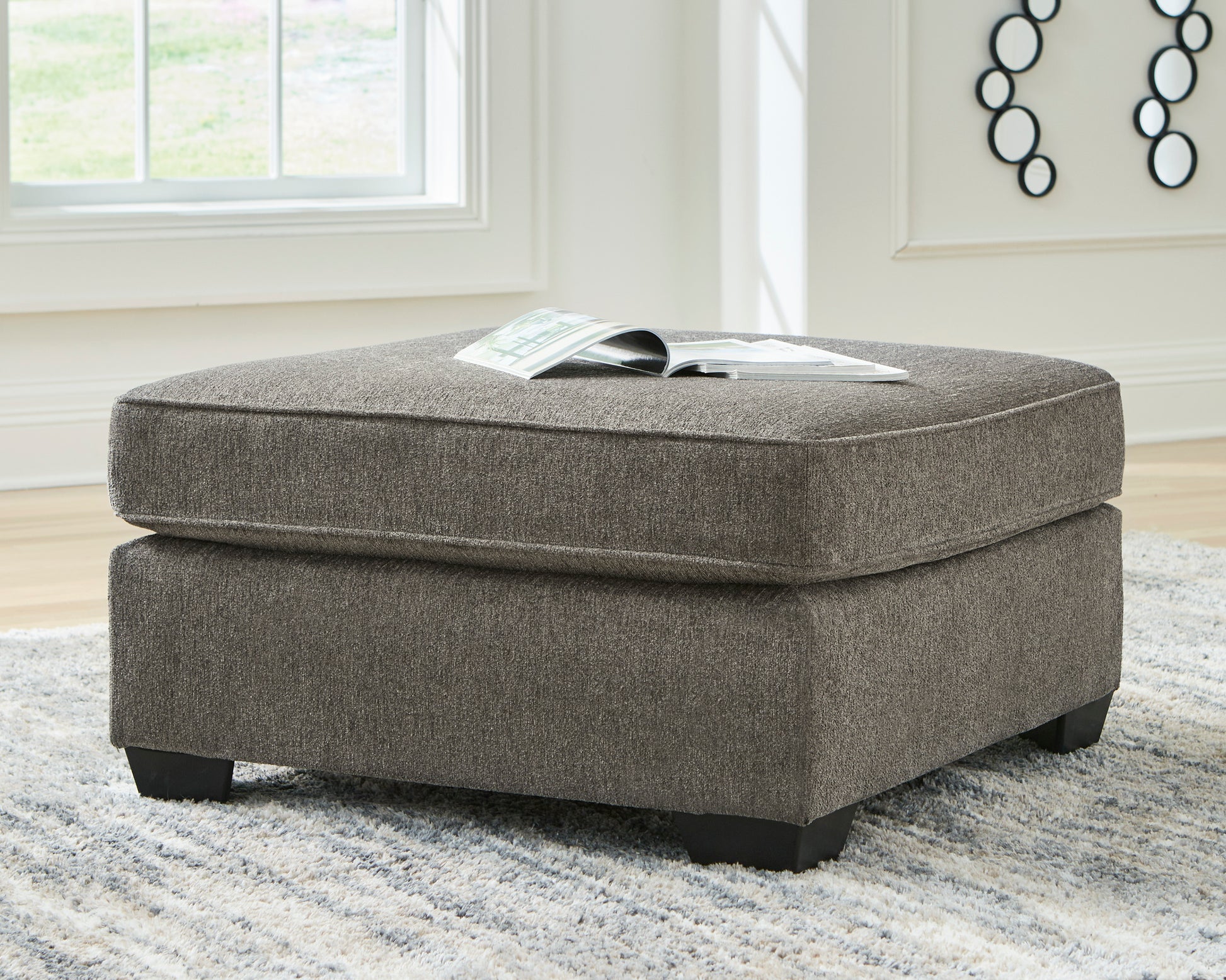 If style is the question, then the ottoman is the answer. Its decidedly contemporary profile is enhanced with plump cushioning and a chenille-feel upholstery that's so pleasing to the touch. Rest assured, this ottoman in slate gray is sure to play well with so many color schemes.