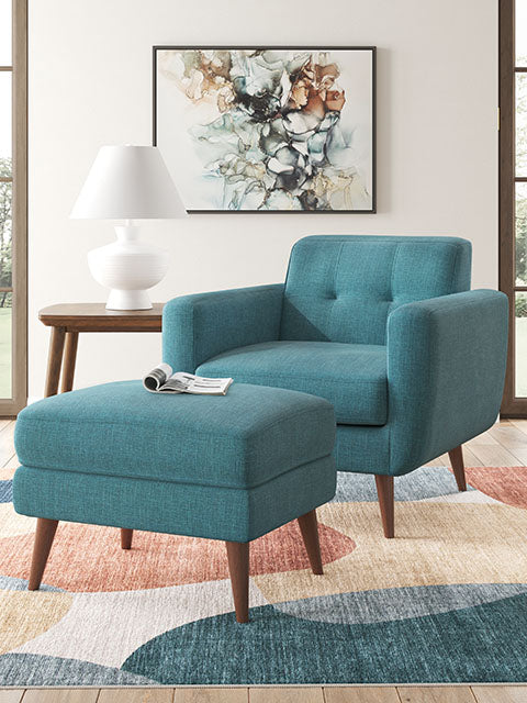 Classic mid-century style meets contemporary flair with this sofa. Flared accent legs lend a retro vibe, while slender track arms bring the look right to the present. In a beautifully brilliant teal hue, it adds a pop of color to neutral spaces. A chic button-tufted back cushion rounds out the charmingly cool design.