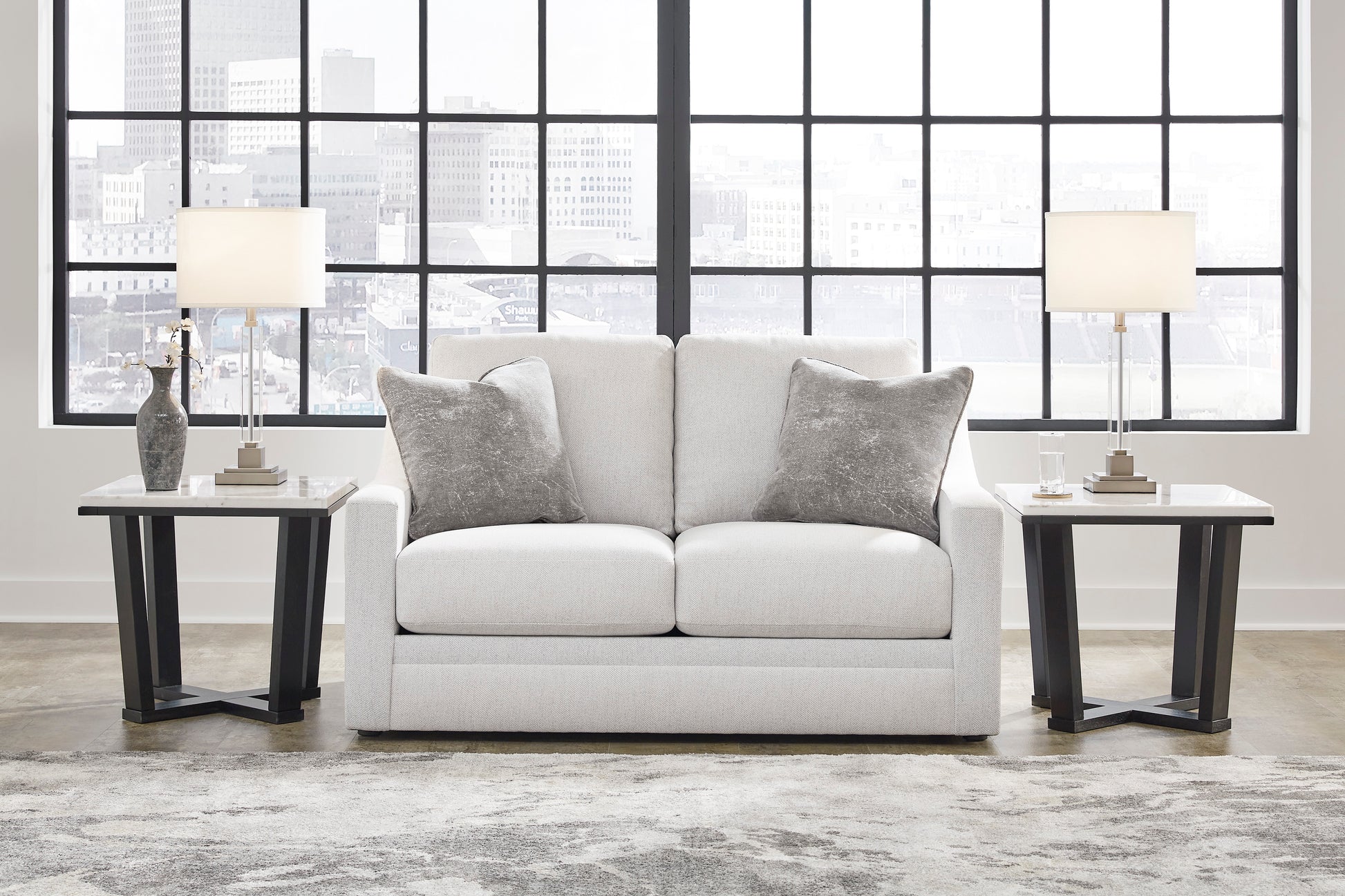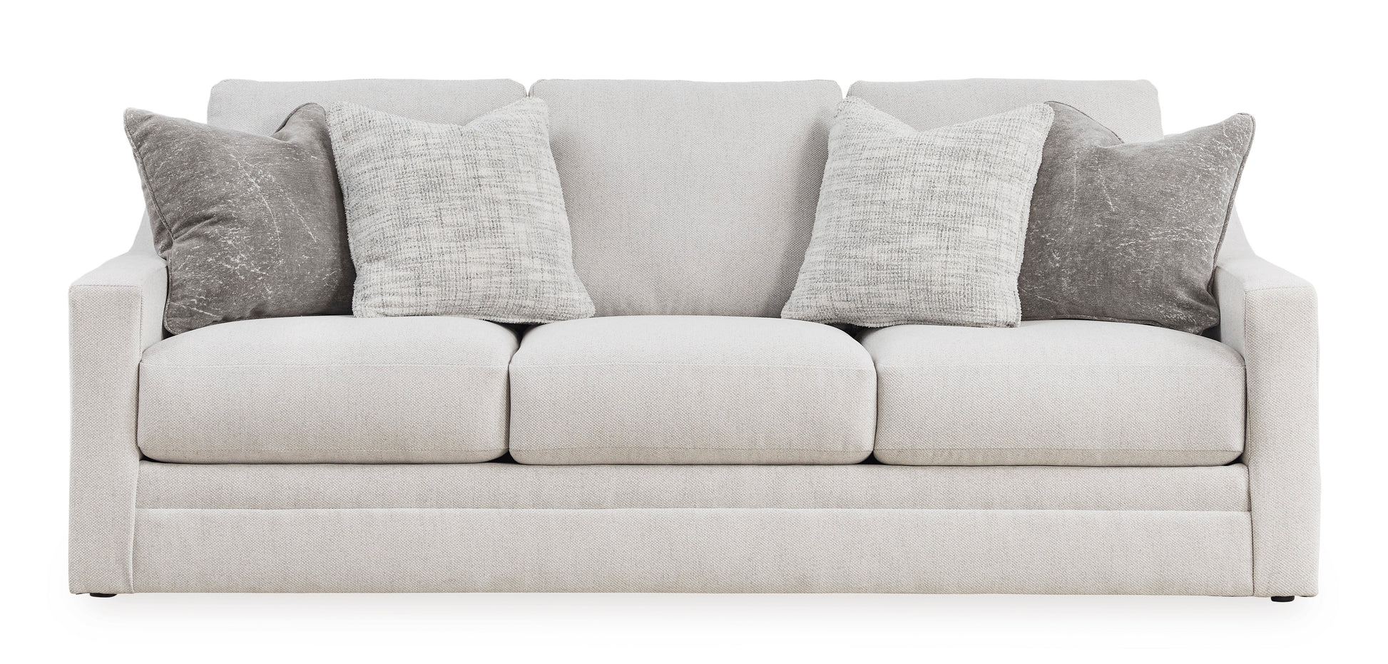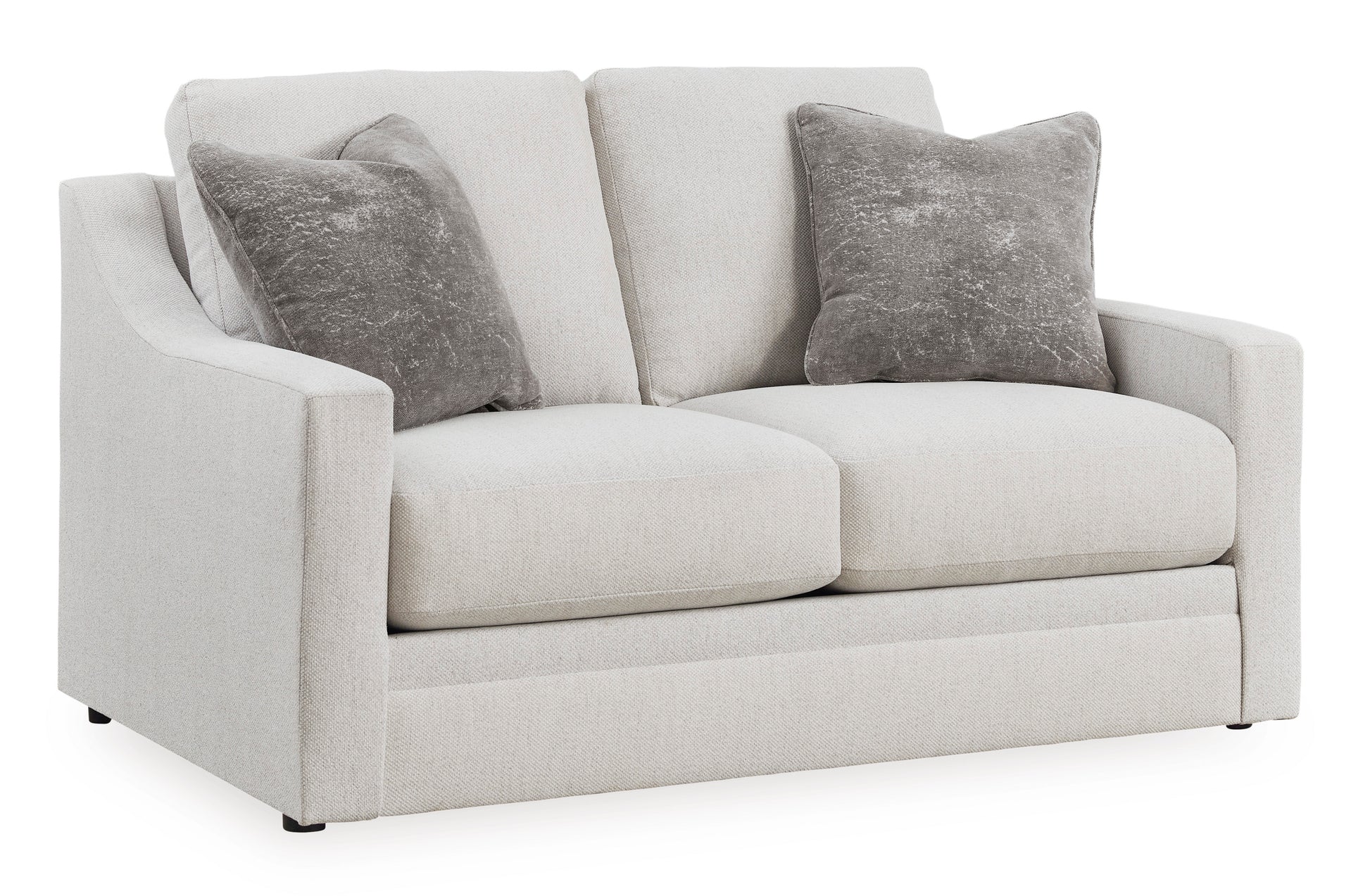 Clean lines and a streamlined silhouette define the architectural attitude of the Maitelynn Sofa set. Textured accent pillows in complementary colors add subtle contrast, while plush reversible cushions beckon your body to sit down, get comfy and relax completely.Corner-blocked frame