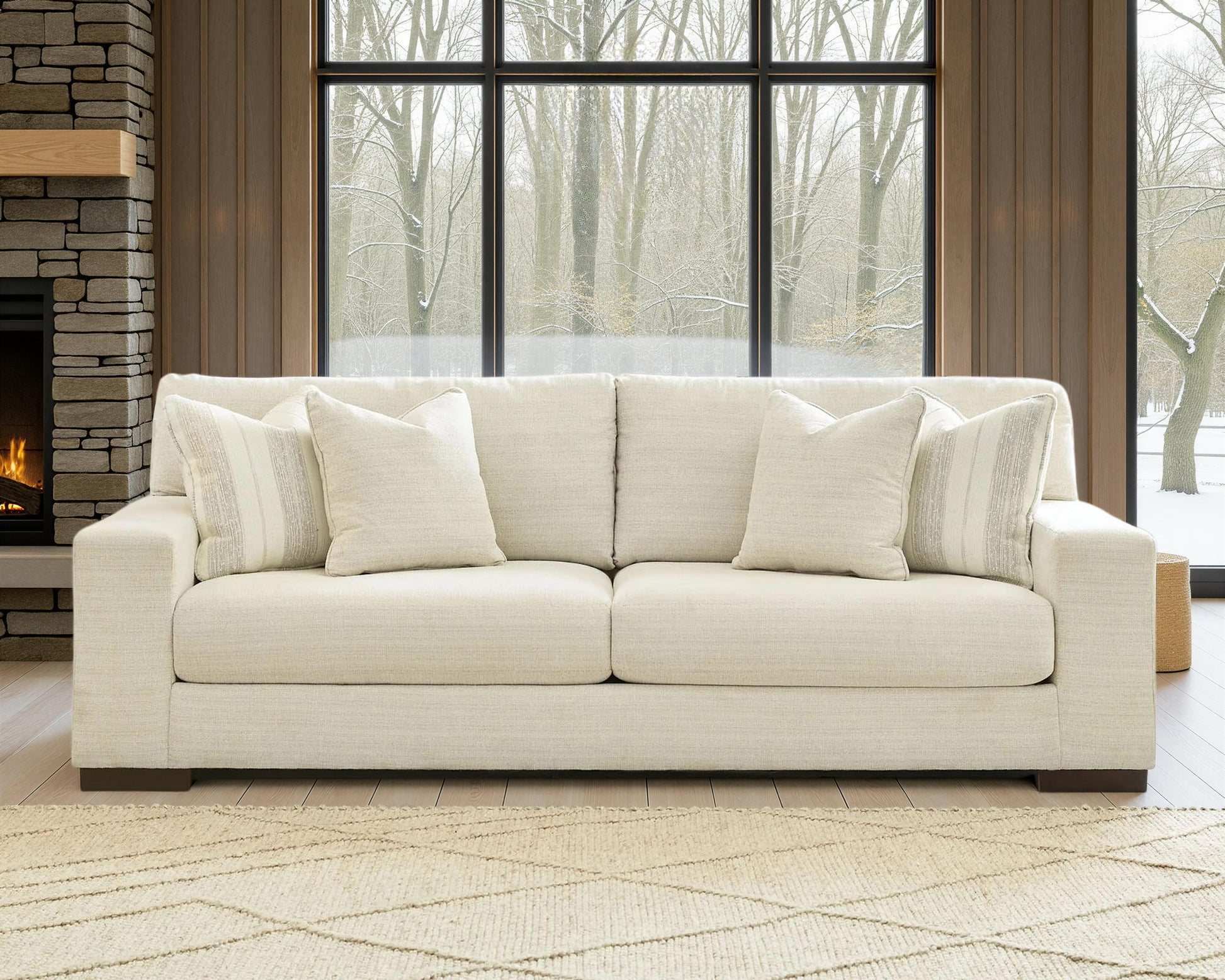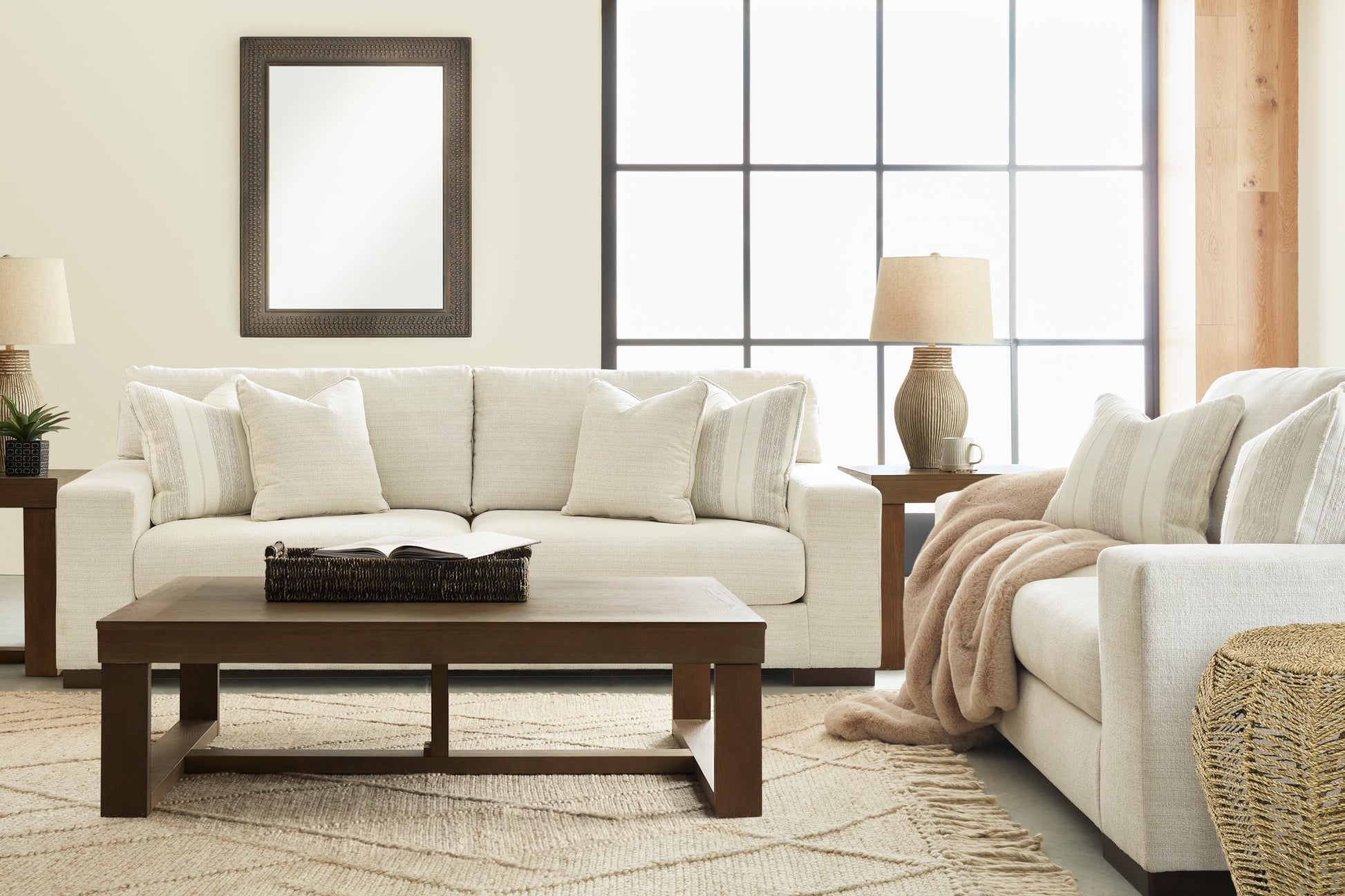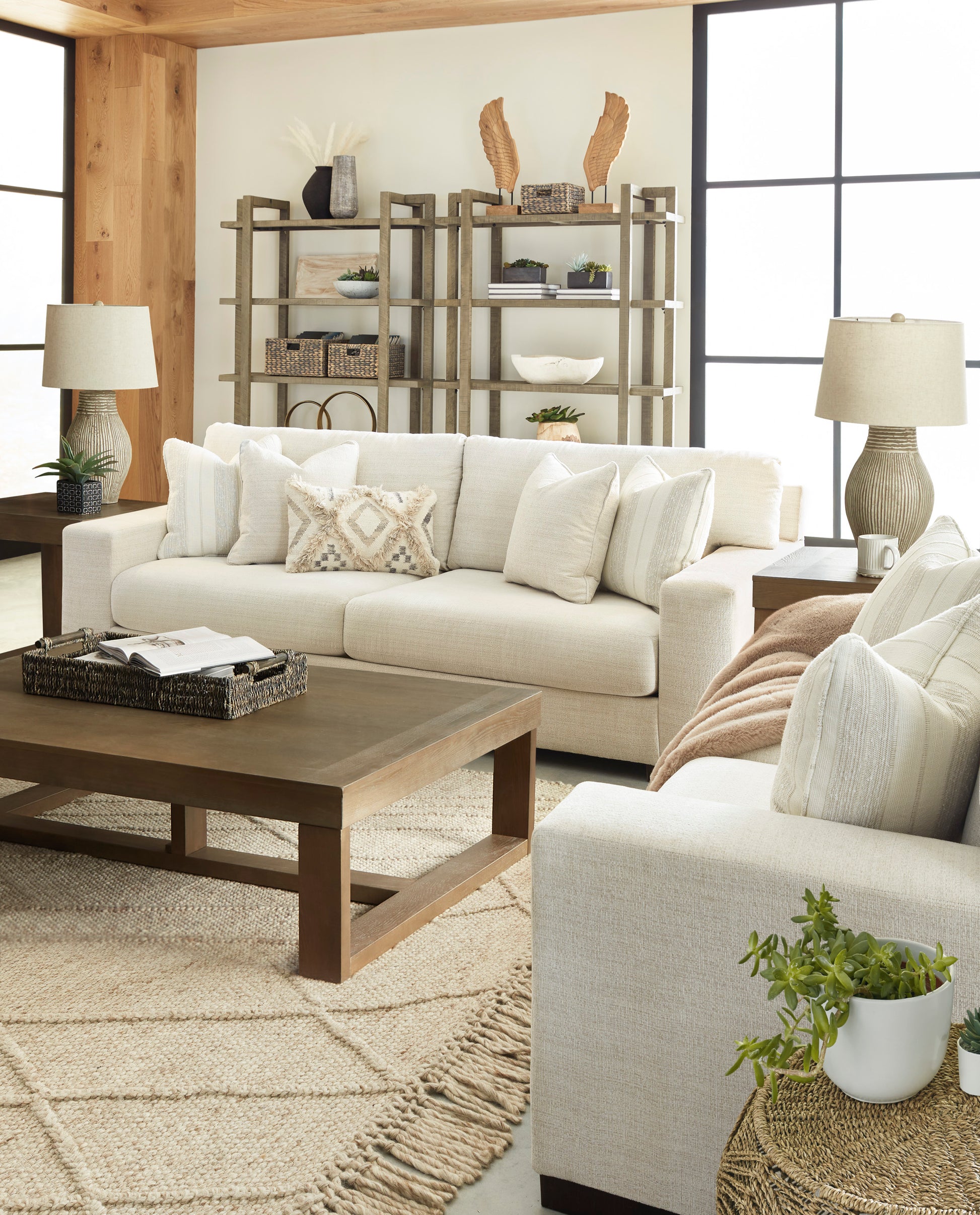 Classic comfort gets a mod twist with the Maggie sofa and loveseat package. Its minimalistic approach and structured silhouette bring a clean-lined design element to your living room. Sink into the positively plush cushions while relaxing solo or curl up with a glass of wine while hosting guests. And with light neutral upholstery that suits both casual and contemporary spaces, this set offers endless style possibilities.Maggie Sofa