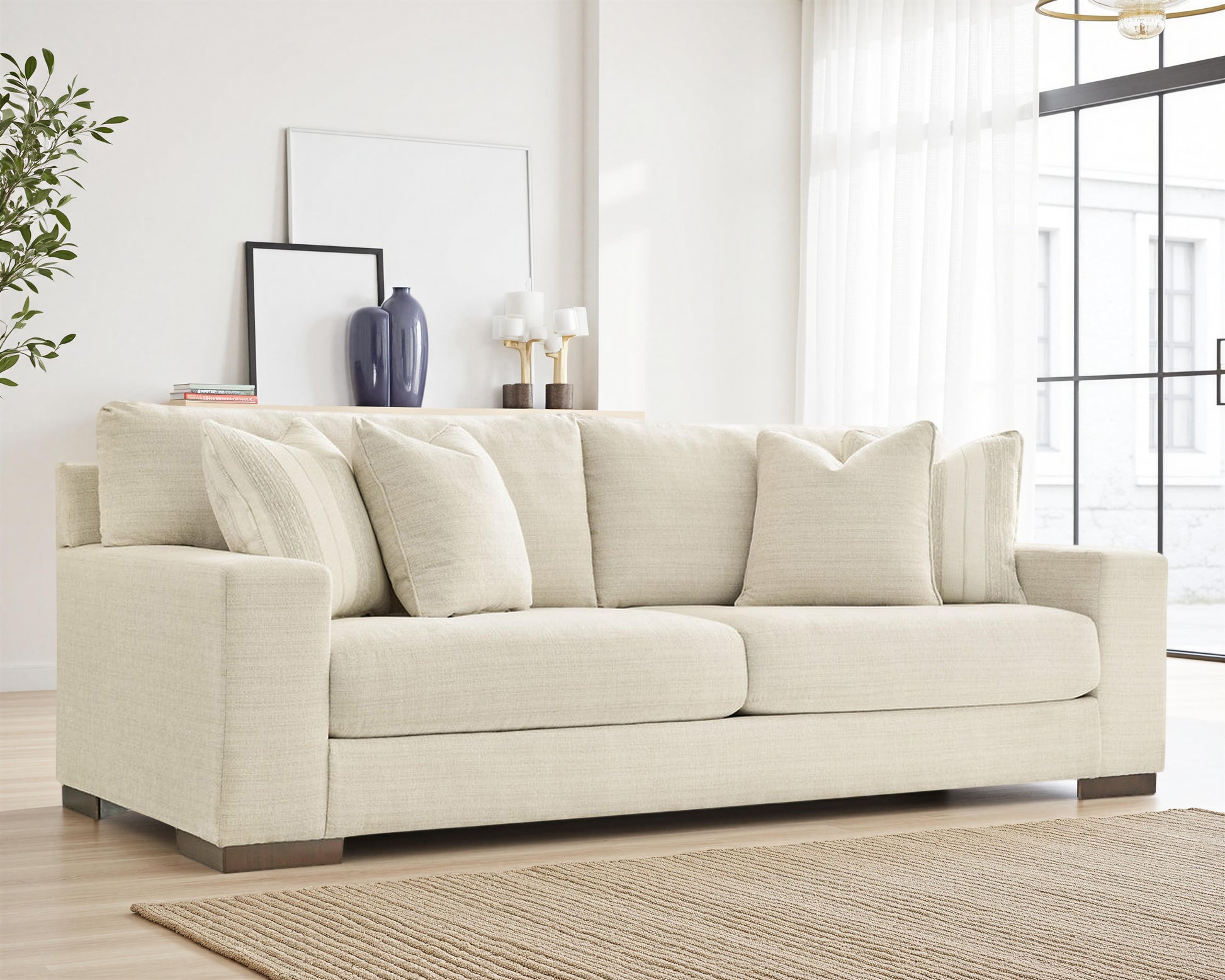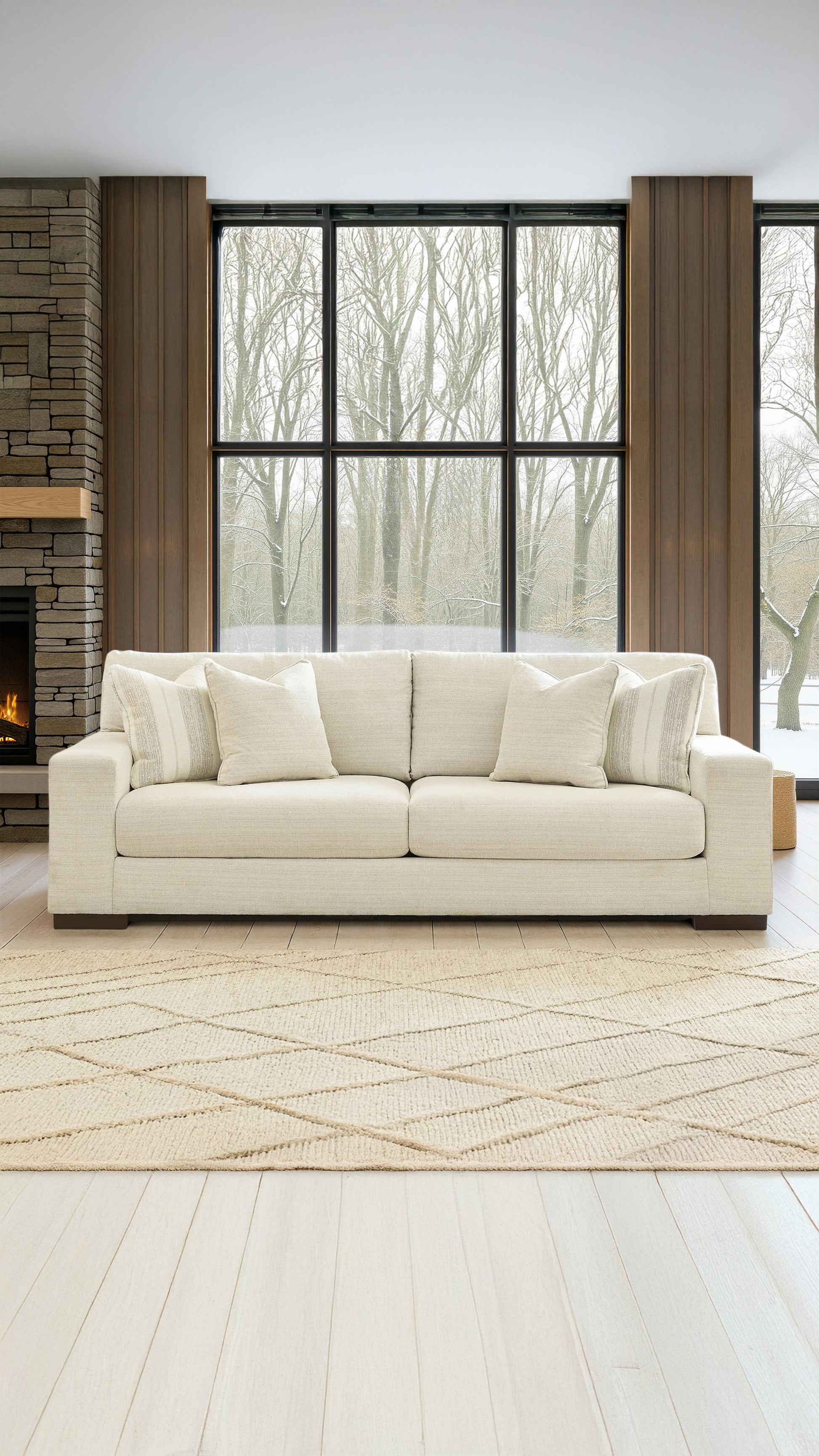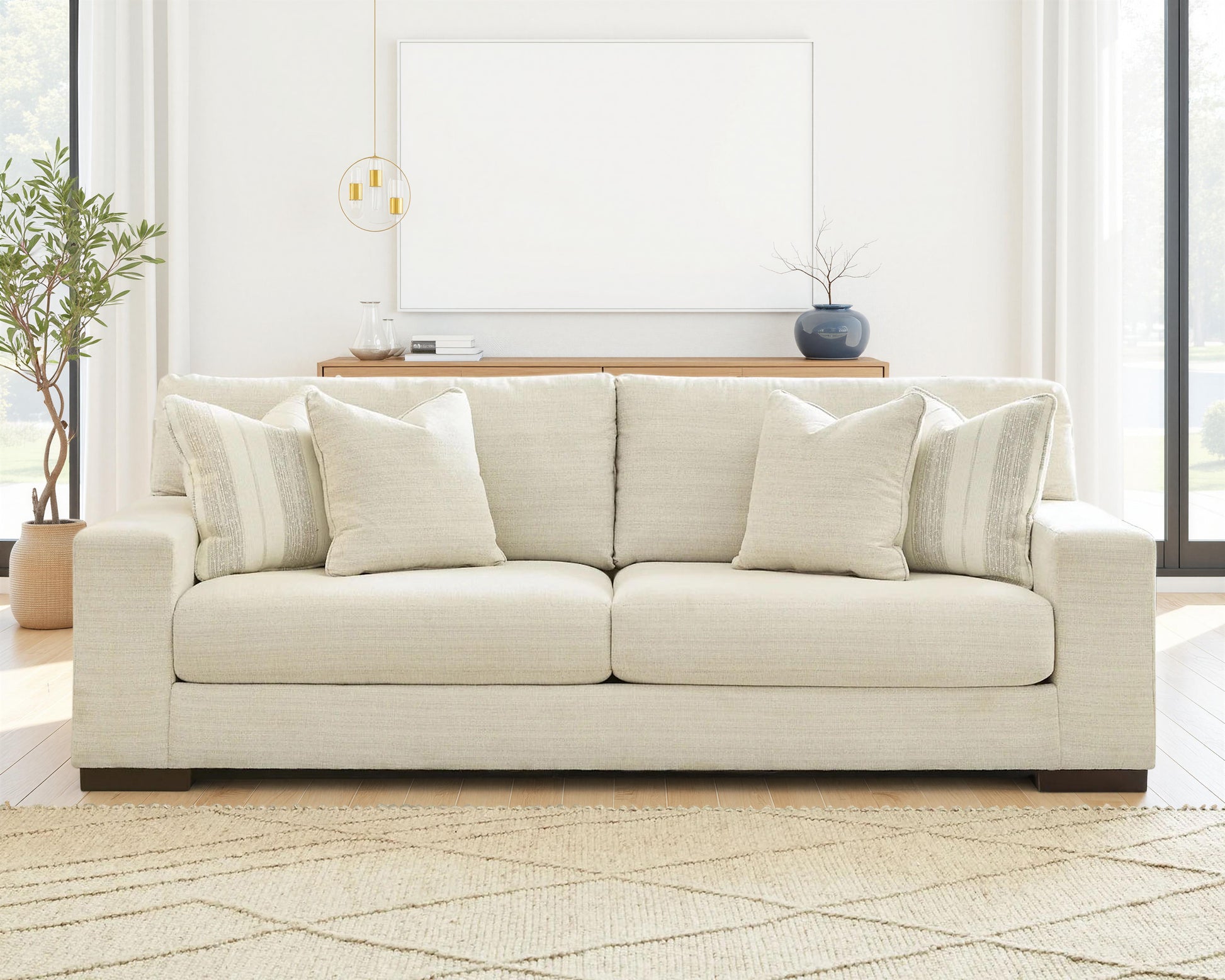Classic comfort gets a mod twist with the Maggie sofa and loveseat package. Its minimalistic approach and structured silhouette bring a clean-lined design element to your living room. Sink into the positively plush cushions while relaxing solo or curl up with a glass of wine while hosting guests. And with light neutral upholstery that suits both casual and contemporary spaces, this set offers endless style possibilities.Maggie Sofa