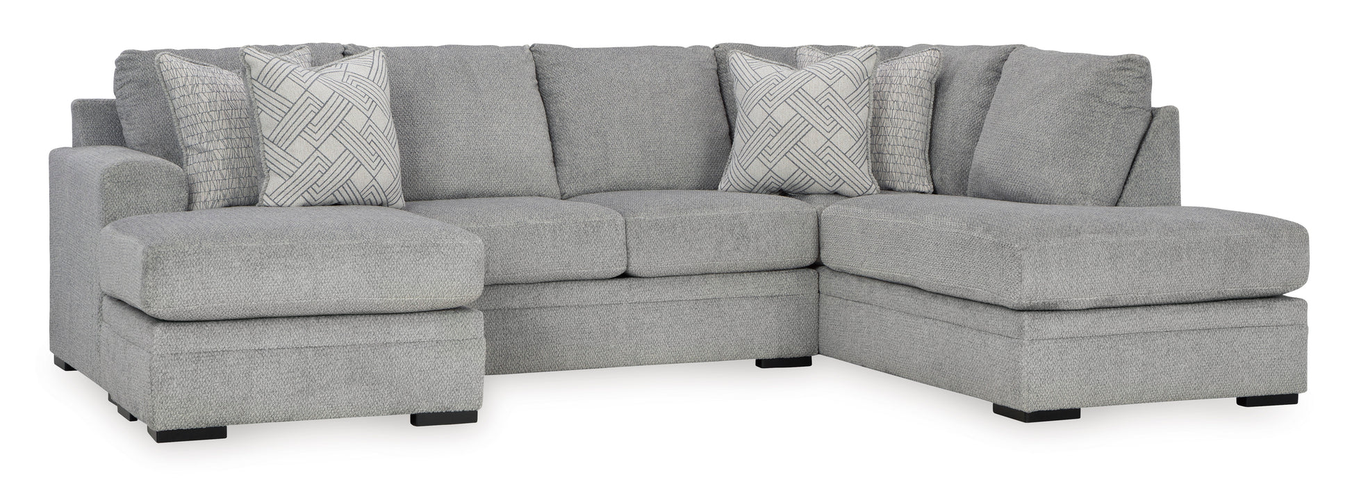 Don€™t be limited by a lack of space. The Casselbury sectional makes family movie nights and get-togethers with friends all the more cozy. With its double-chaise configuration, everyone has a spot to lounge. A trendy gray hue offers the contemporary style you crave. So, sit back and relax€”this functional piece is ready to indulge you with everyday comfort.