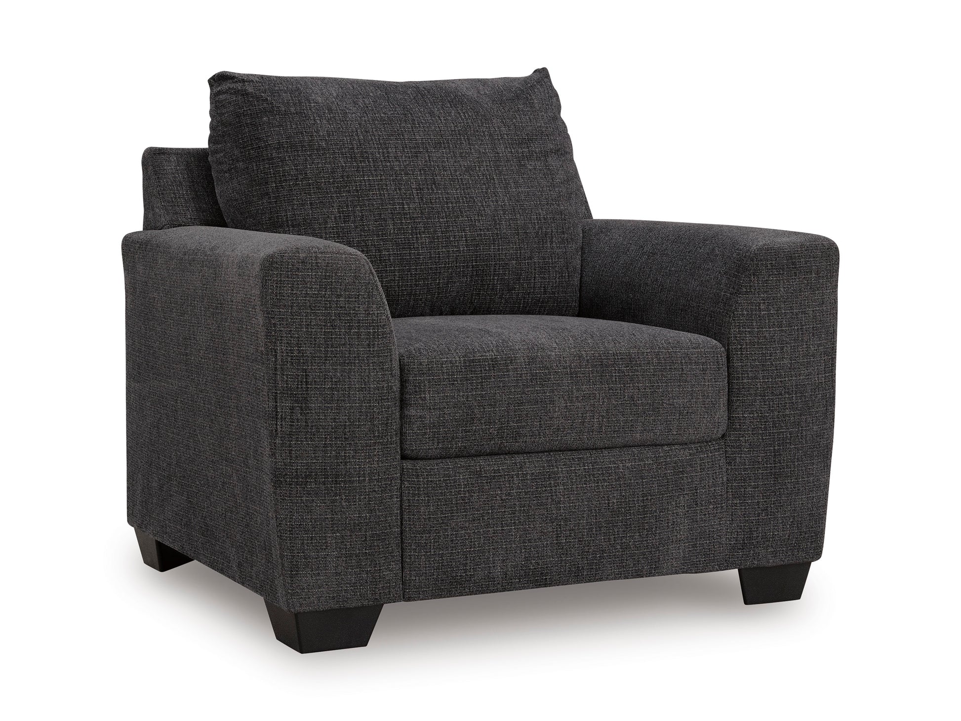 This sofa personifies contemporary comfort. Its clean-lined frame and neutral color lend must-have versatility. Softly textured fabric makes it that much more inviting. A welcome combination of chic style and a cozy feel, this piece completes your living room with modern flair.• Reinforced frame provides added stability