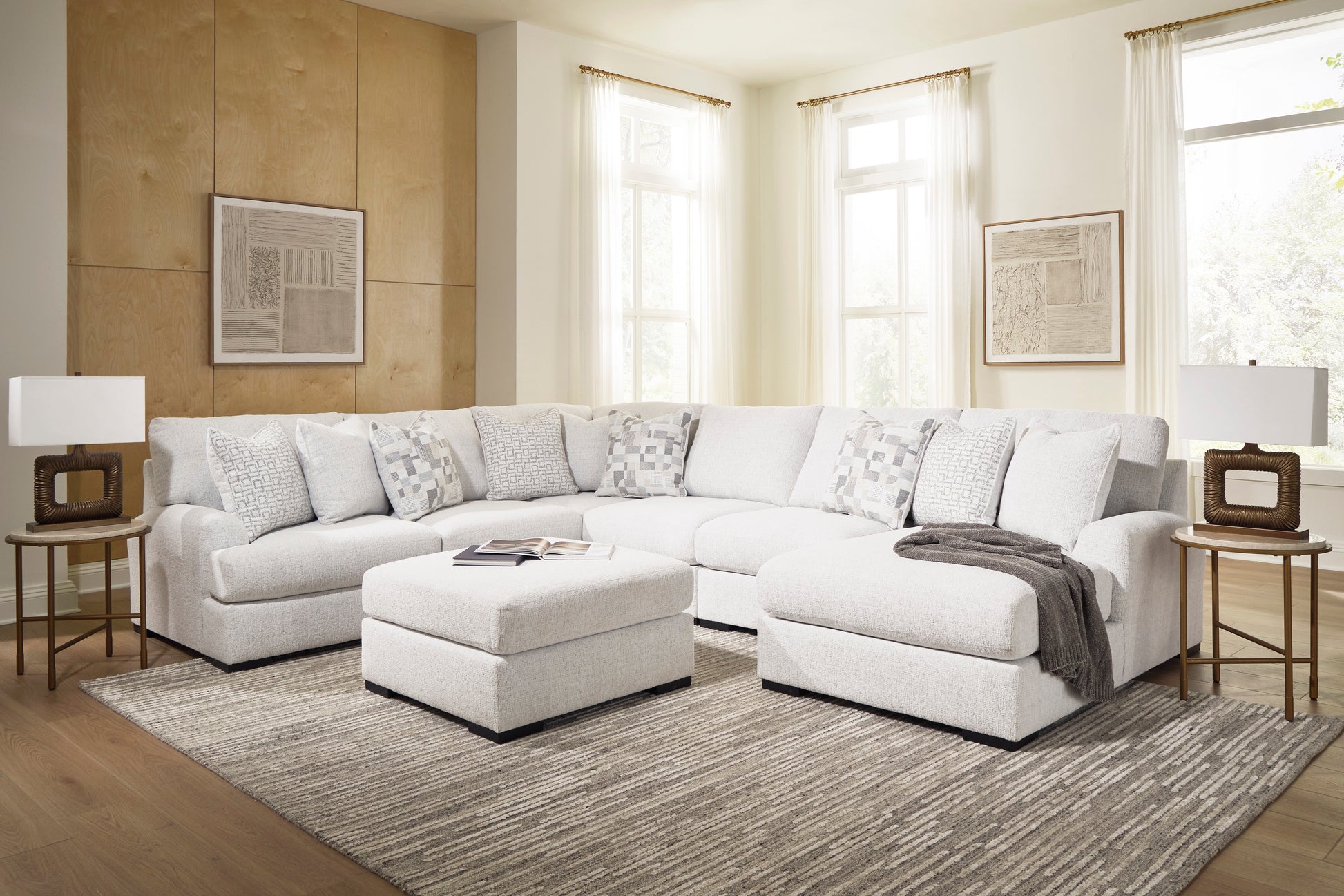 Marvelously mod, the stunning Wynncroft sectional delivers a refined appeal that's easy to blend and easy to love. Its clean-lined design features plush cushions wrapped with velvety soft fabric in a warm, earthy hue. Plus the sectional's modular configuration and non-skid legs ensure versatility and stability in any arrangement. Sit back and relax in comfort and style, with plenty of room to stretch out and unwind at the end of a long day—either solo or with your special someones." -