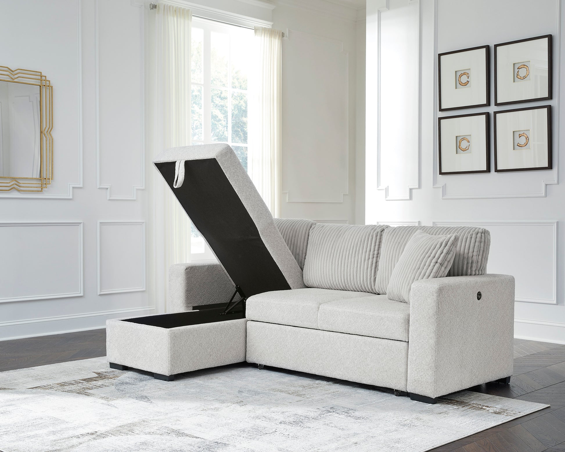 €¢ Includes 2 pieces: left-arm facing corner chaise with storage and pop up sleeper with drop down table