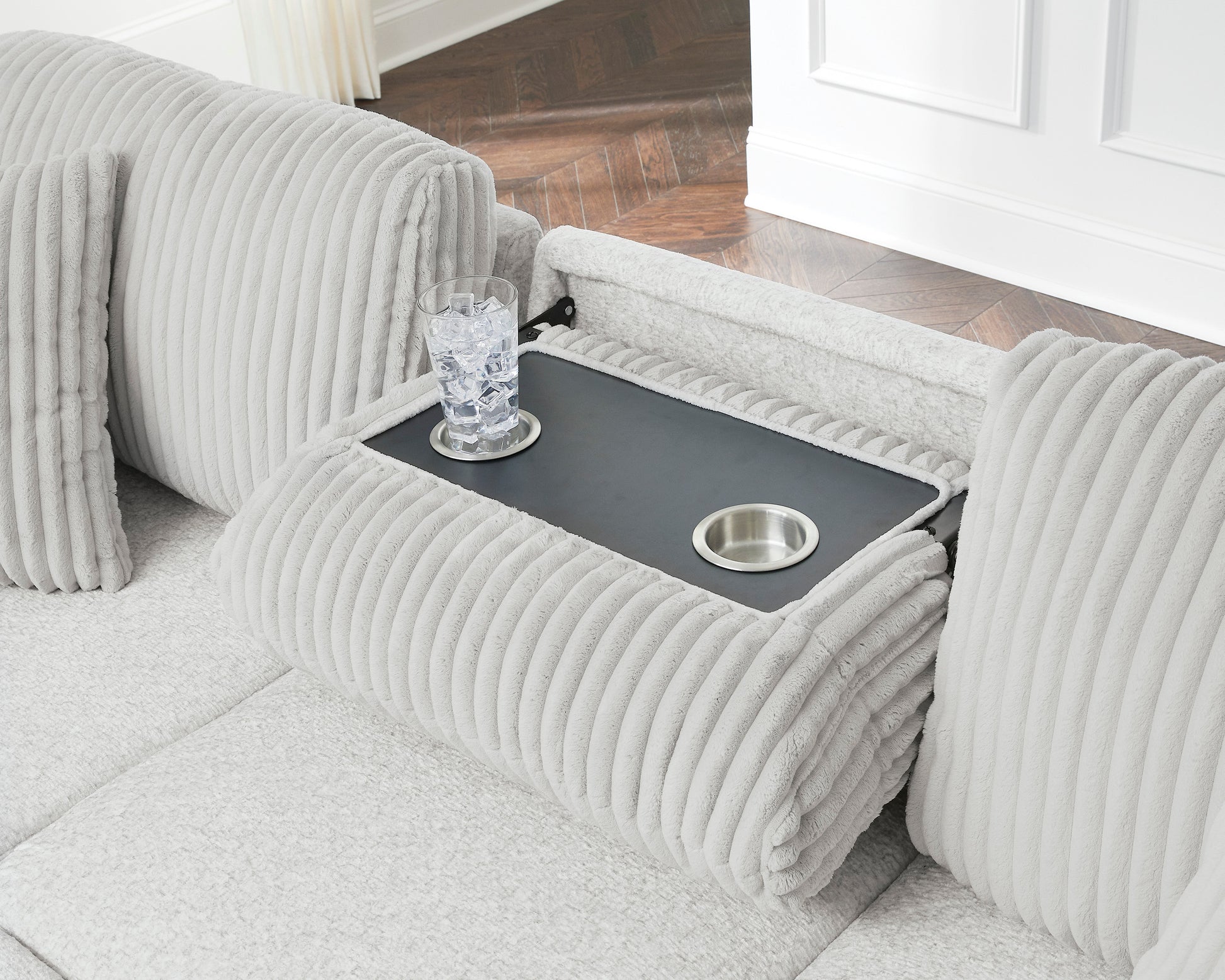 €¢ Drop-down table with 2 cup holders; storage under chaise