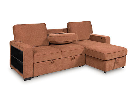 Looking to make a bold statement with color? Liven up your living room with the Aviemore sectional with chaise. Its trend-right burnt orange upholstery adds a playful pop of color to your decor. Bold and eclectic accent pillows complete the look. Pairing posh style with everyday comfort, this sectional is a welcome addition to contemporary spaces.