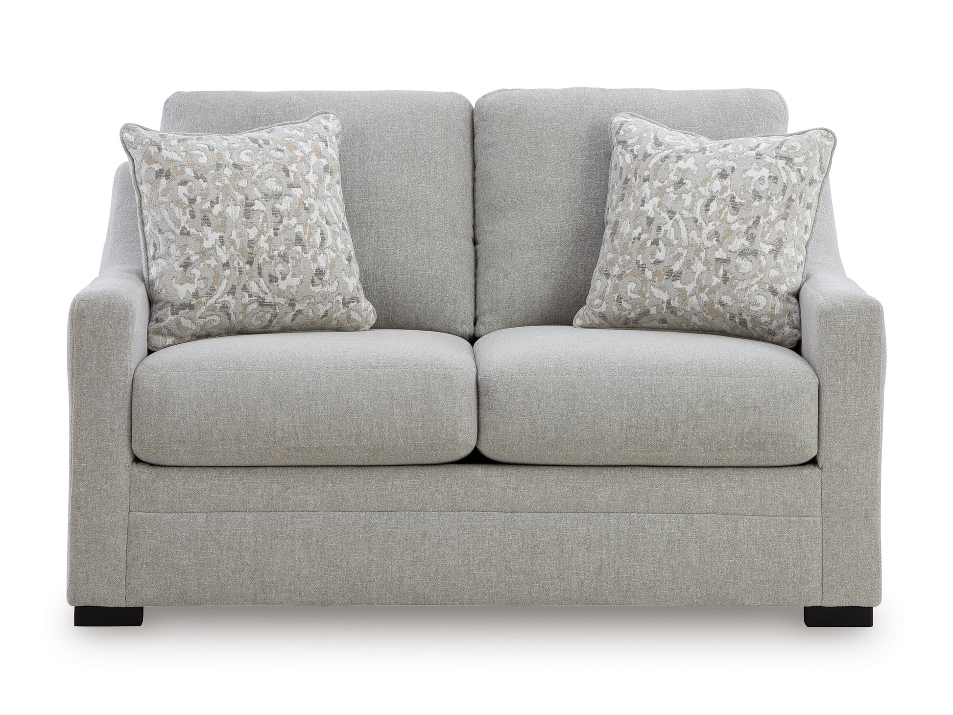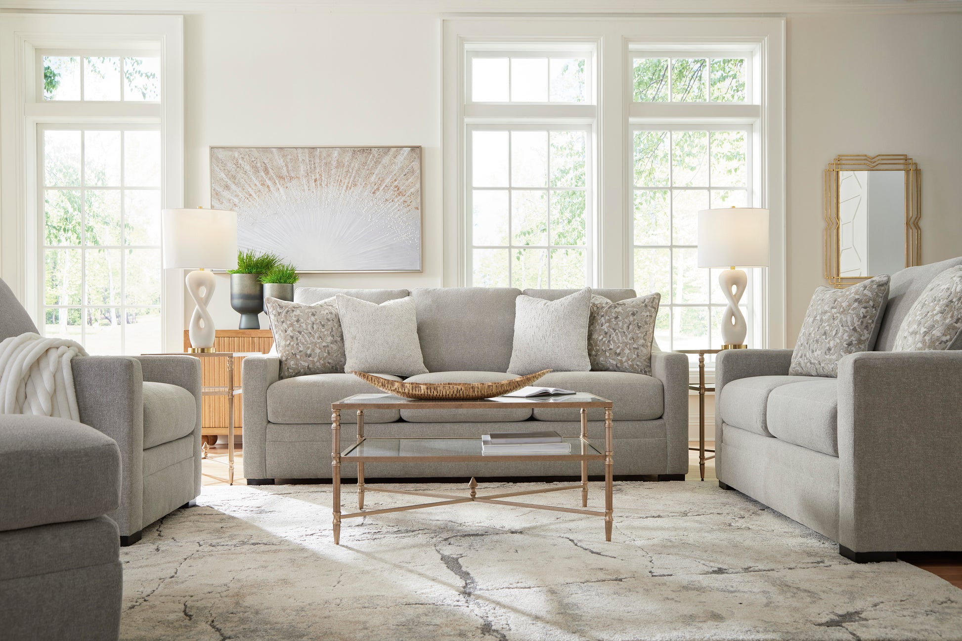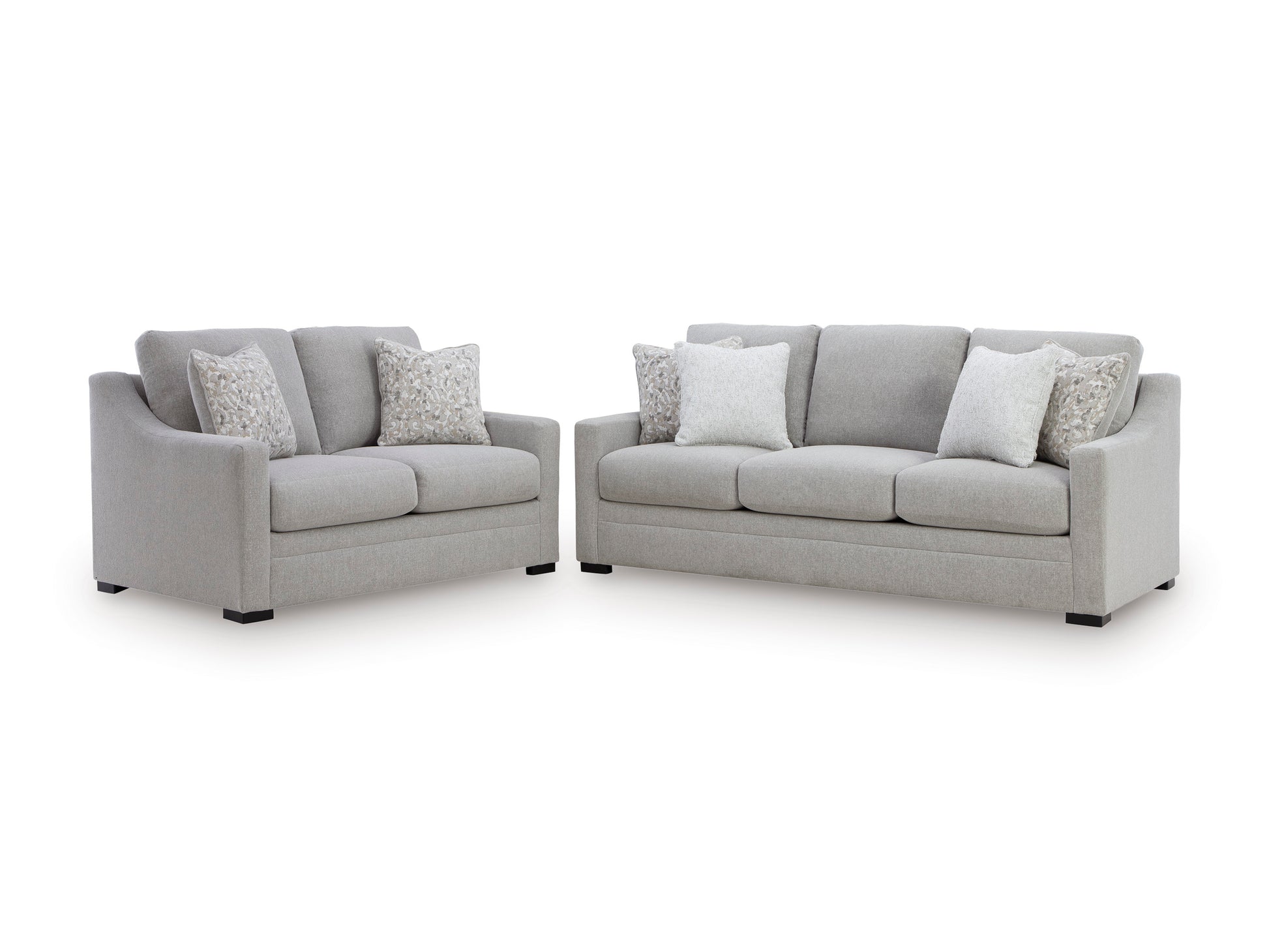 Kids playing after school. Dinner by the TV. Hosting watch parties for friends. Life€™s little moments can get messy€”with the Ivory Brook Sofa set, they don€™t have to be. Its Next-Gen Nuvella„¢ performance fabric cleans up nicely, while machine-washable cushion and pillow cover provide added ease. And with a sleek silhouette in a classic, versatile gray, it suits styles from casual to contemporary. How€™s that for low-maintenance lounging?Corner-blocked frame