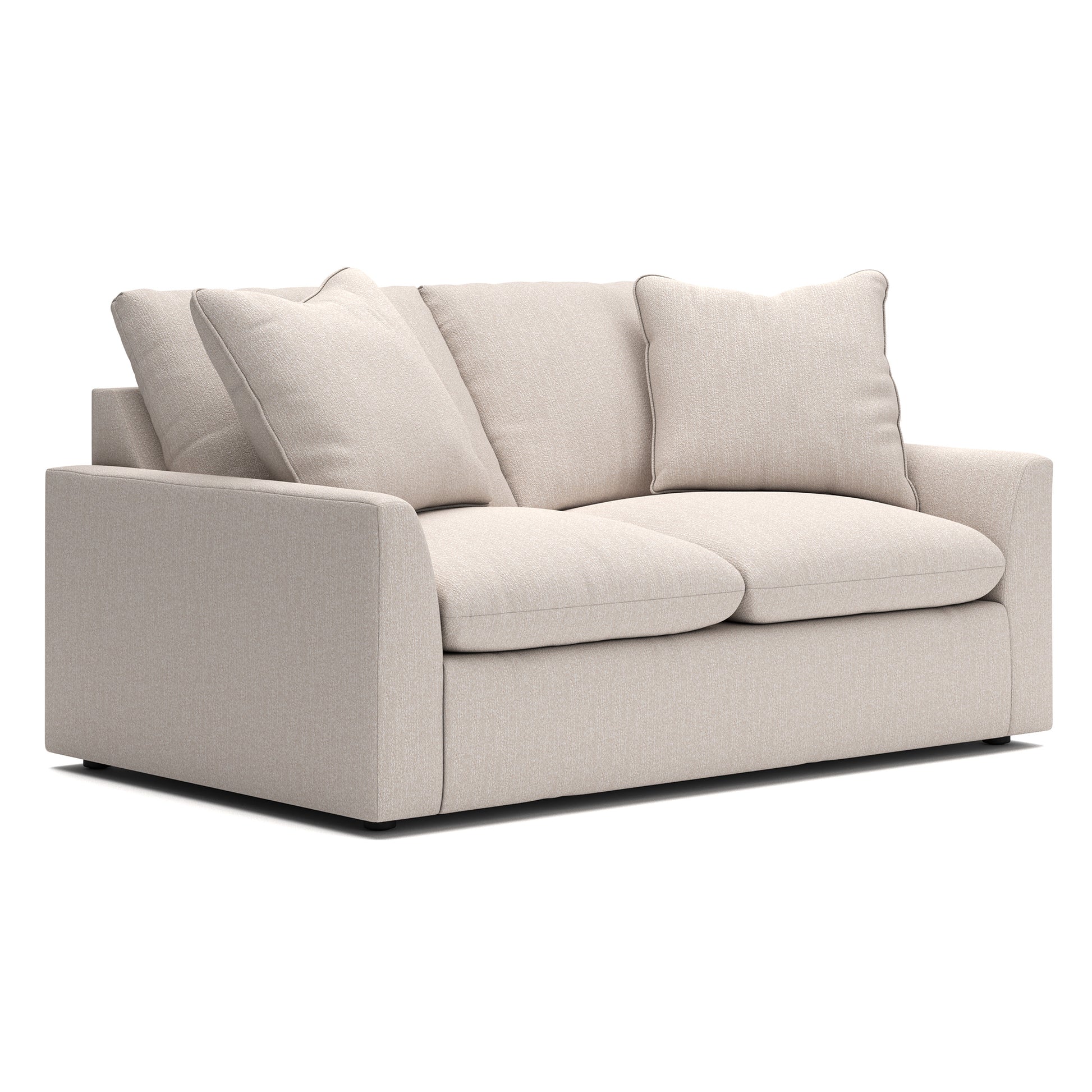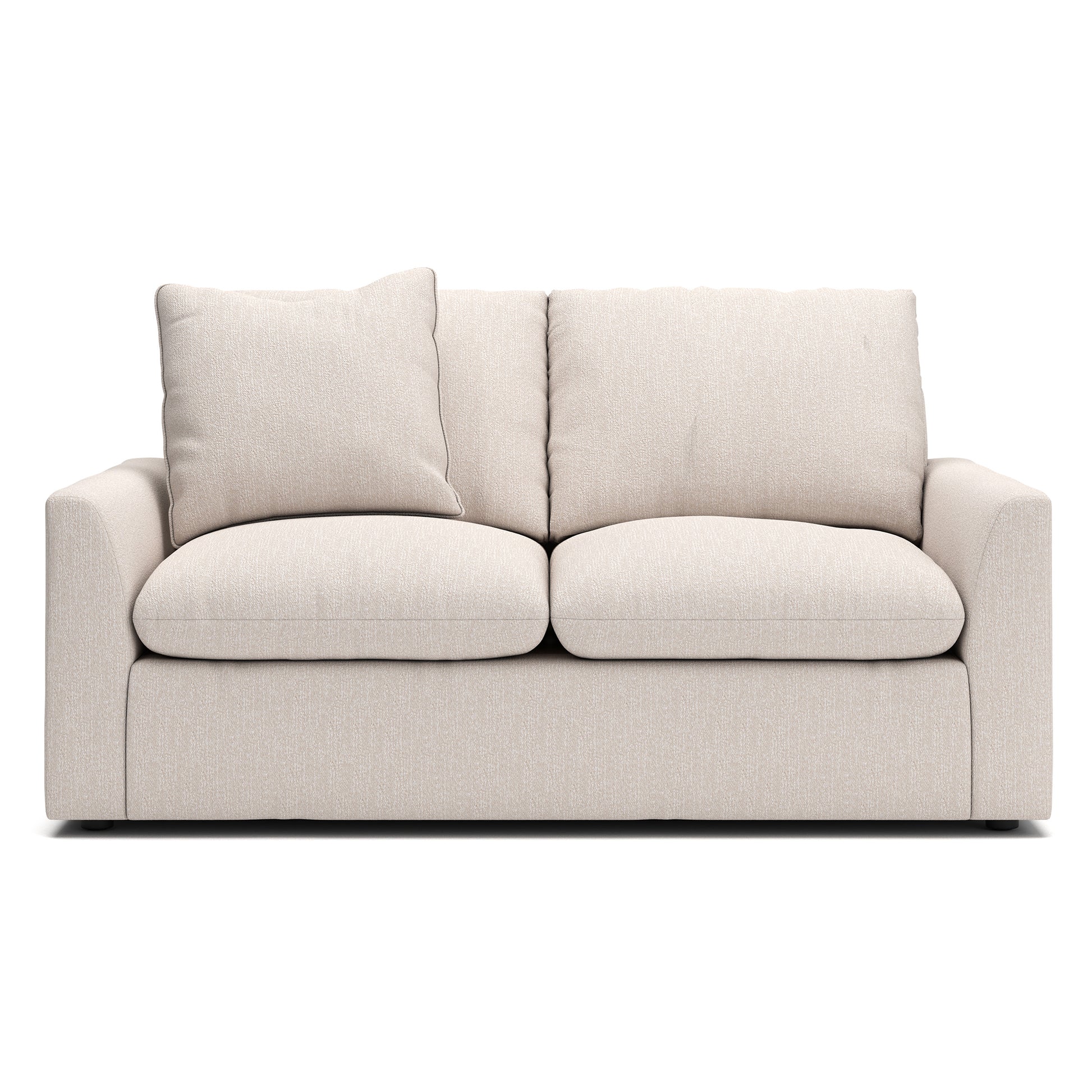 Flaunting a trendsetting silhouette, the Whitehaven Loveseat puts the contemporary in your contemporary home. Its €œthree over two profile eliminates the center seat cushion, giving you elongated plushness and deep seating. And the chunky chenille fabric satisfies your need for a piece that feels as good as it looks. Soft jacquard chenille throw pillows add a splash of geometric pattern and color contrast.Corner-blocked frame