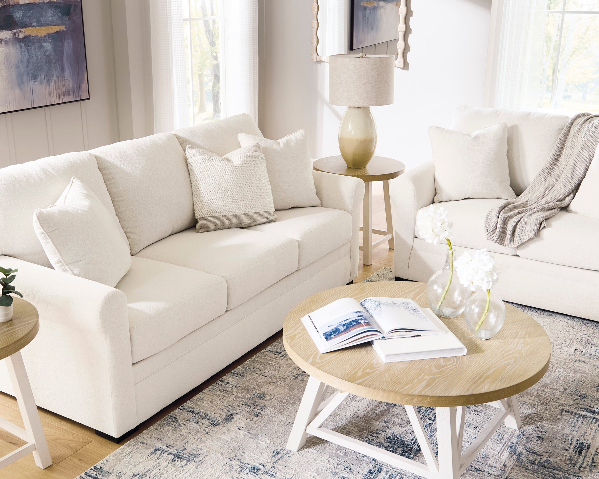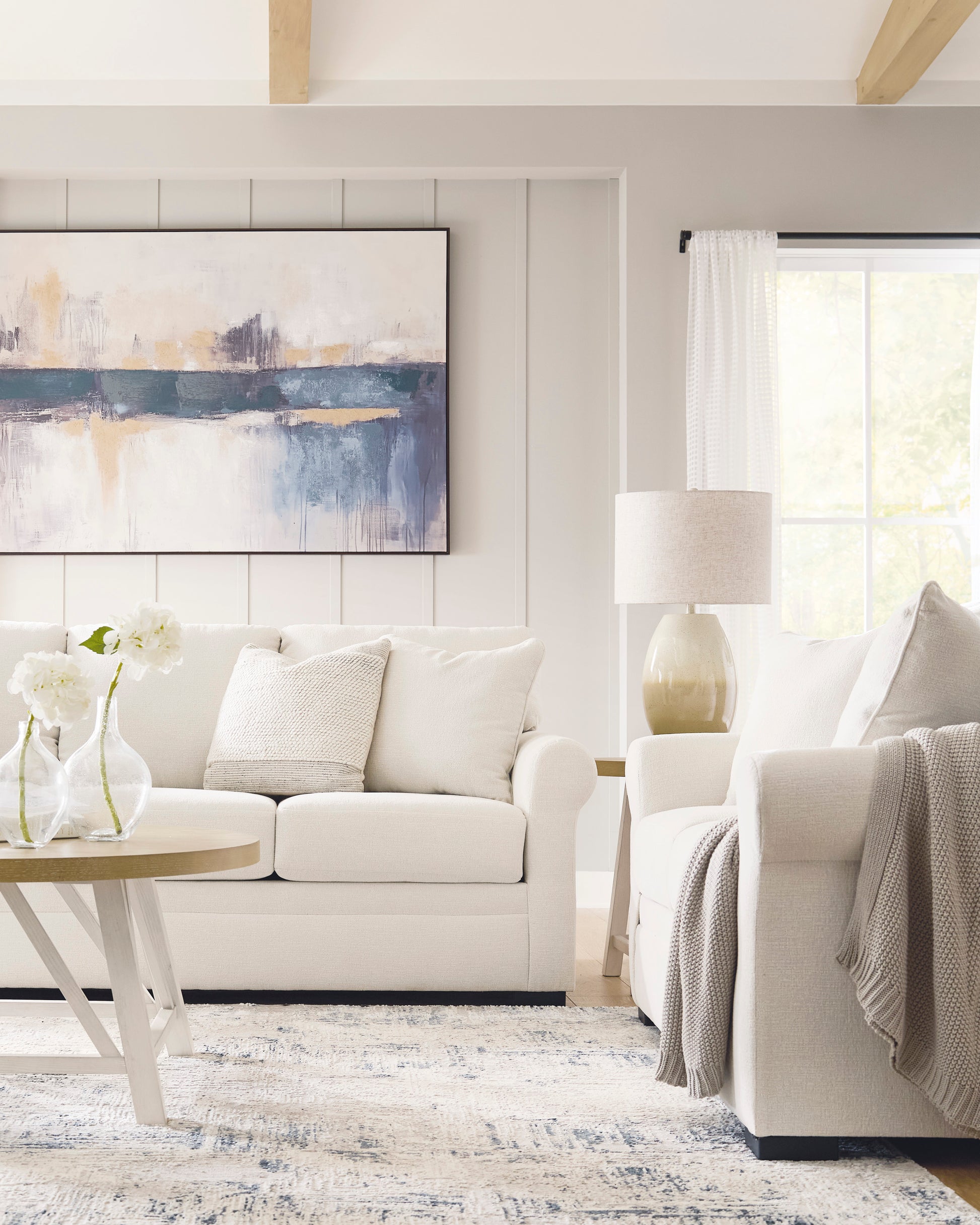 The Hartmoor Sofa set offers timeless comfort, practicality and classic style in perfect harmony. Its soft Next-Gen Nuvella„¢ performance fabric is easy to maintain, making cleanup a breeze. Roll arms exude an air of traditional flair, while the nicely neutral tone adds a modern sensibility. It's the perfect addition to any living space, combining both beauty and peace of mind.Corner-blocked frame