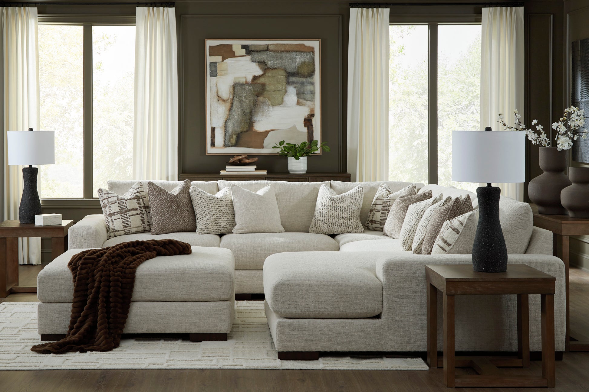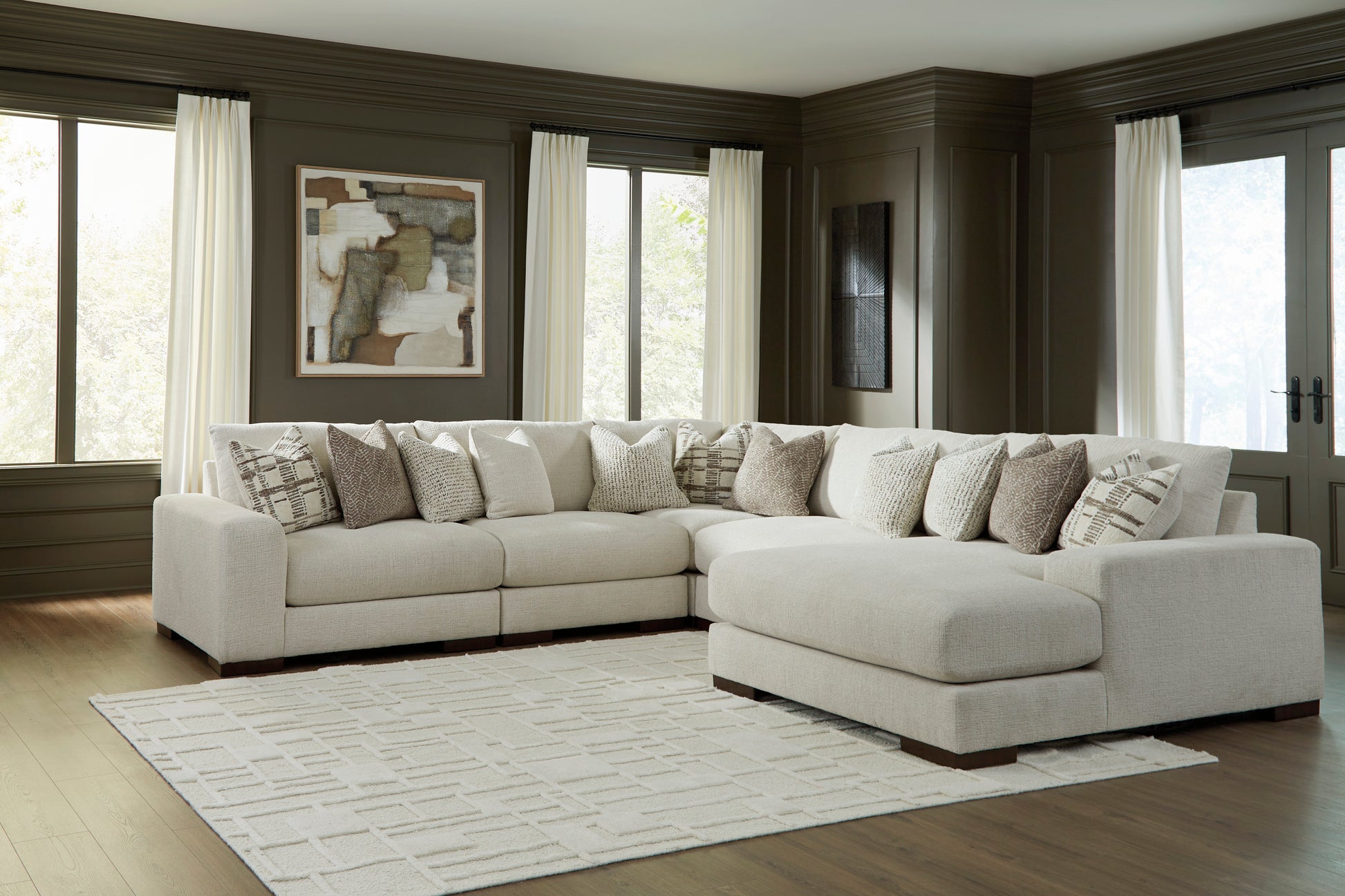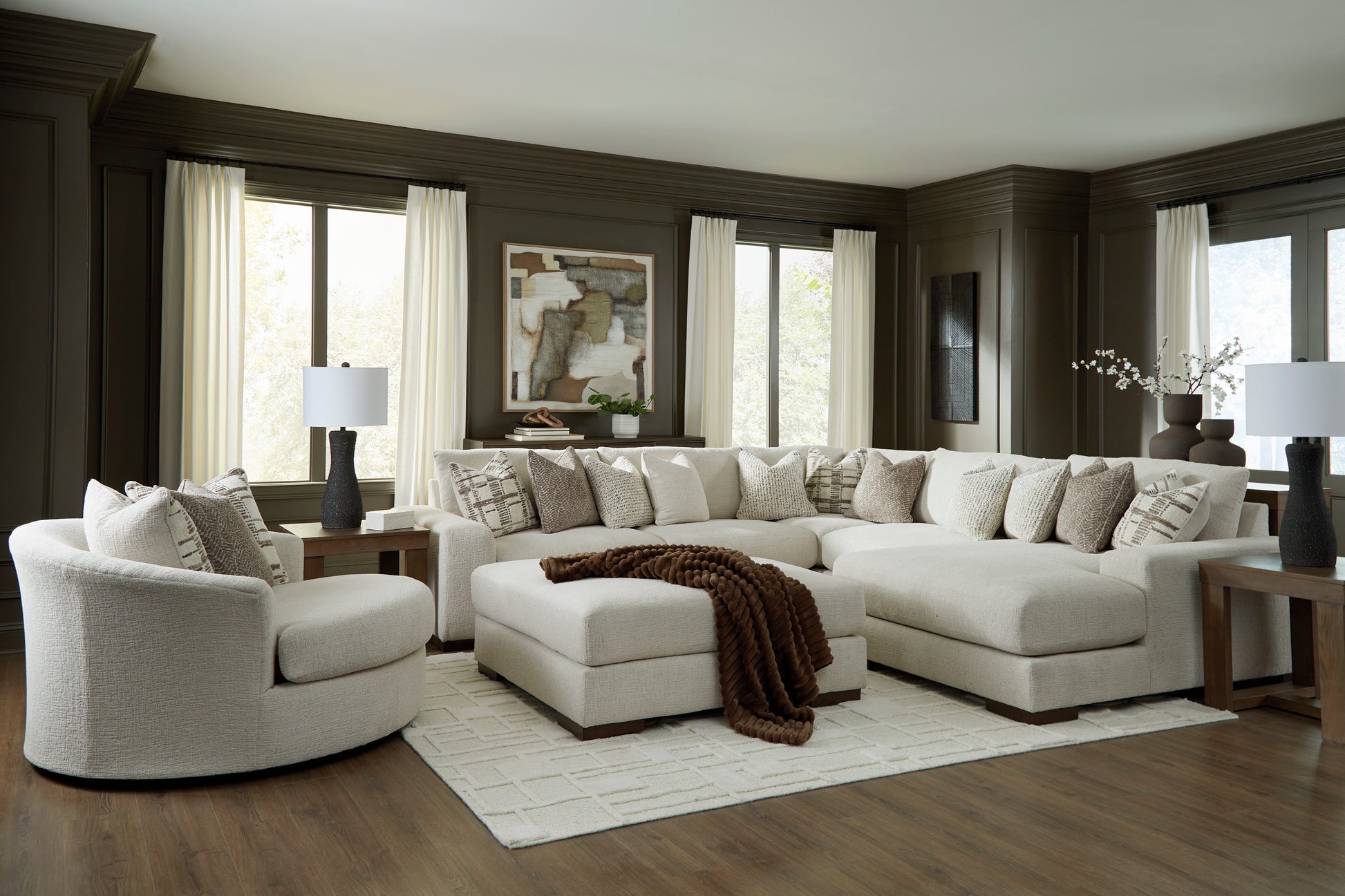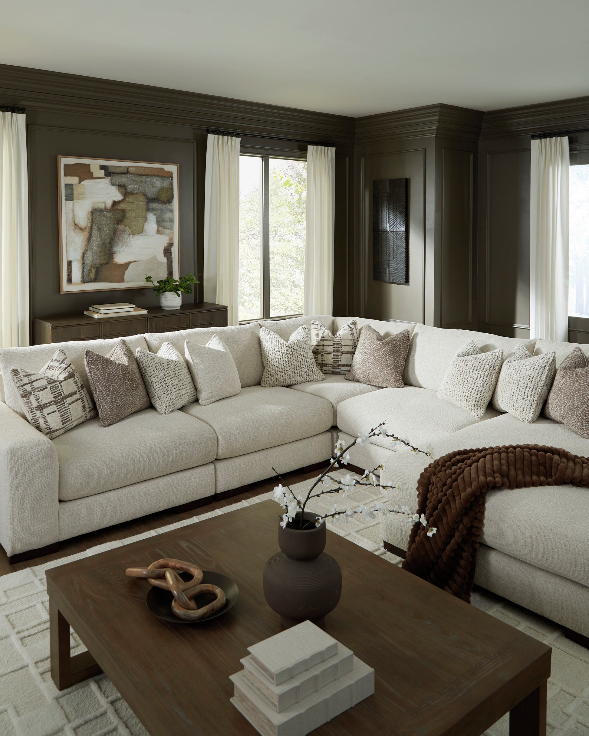 The simple, streamlined style of the Barrelton sectional with chaise is the perfect choice for your casual contemporary home. Oversized cushions and neutral-hued chenille fabric take a relaxed approach to modern flair, creating a fashionable and comfortable retreat. Whether this sectional is used for cozy movie nights or chatting over charcuterie at dinner parties, it keeps its chic character. Hop in, there's always room for one more.