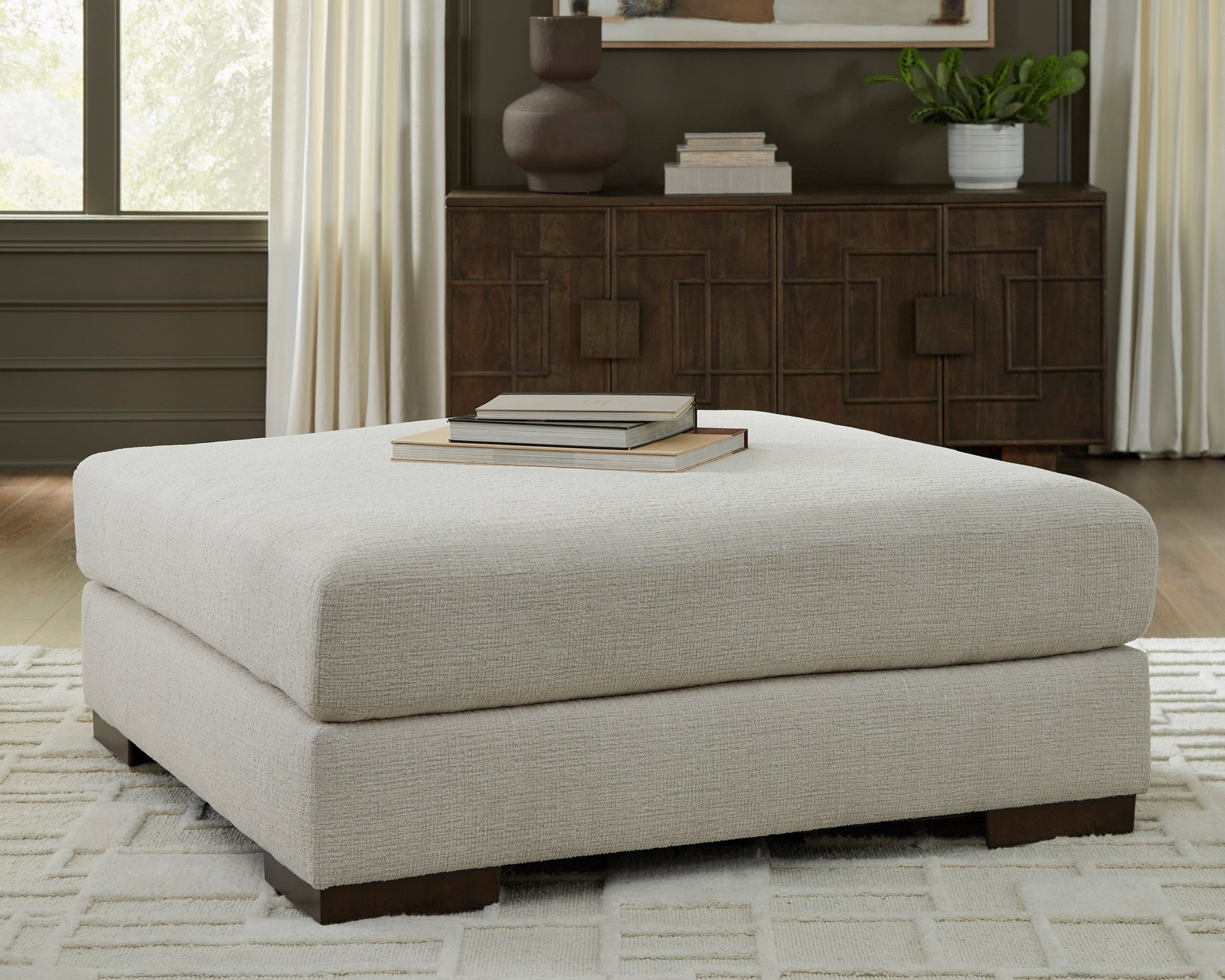 If style is the question, then the ottoman is the answer. Its decidedly contemporary profile is enhanced with plump cushioning and a chenille-feel upholstery that's so pleasing to the touch. Rest assured, this ottoman in slate gray is sure to play well with so many color schemes.