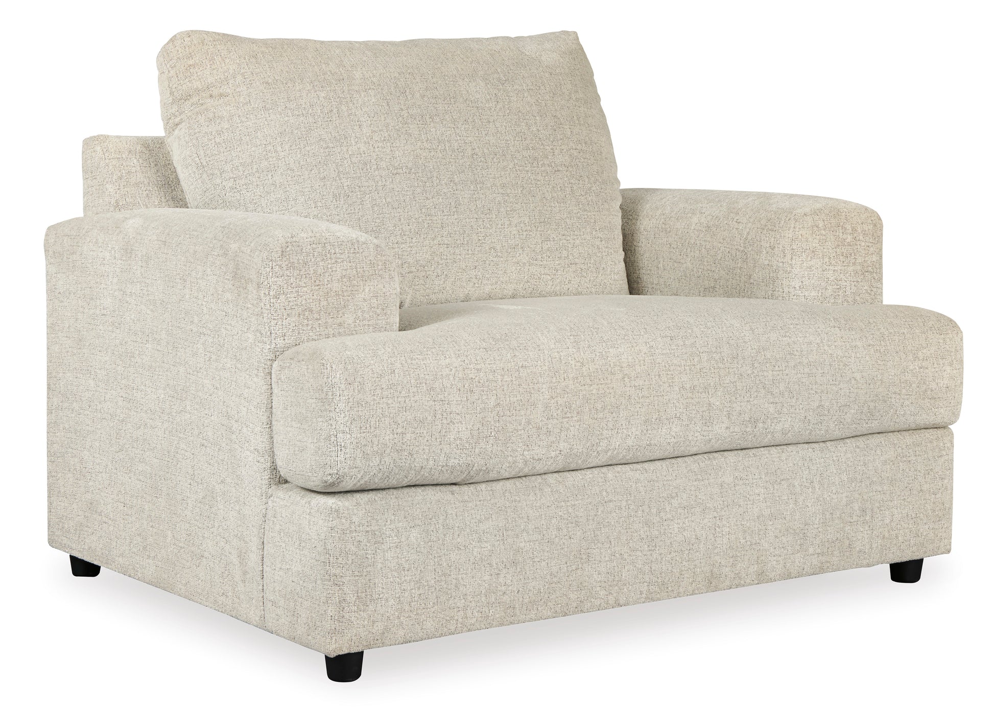 Flaunting a trendsetting silhouette, the Soletren Sofa set puts the contemporary in your contemporary home. Its three over two profile eliminates the center seat cushion, giving you elongated plushness and deep seating. And the chunky chenille fabric satisfies your need for a piece that feels as good as it looks. Soft jacquard chenille throw pillows add a splash of geometric pattern and color contrast.Corner-blocked frame