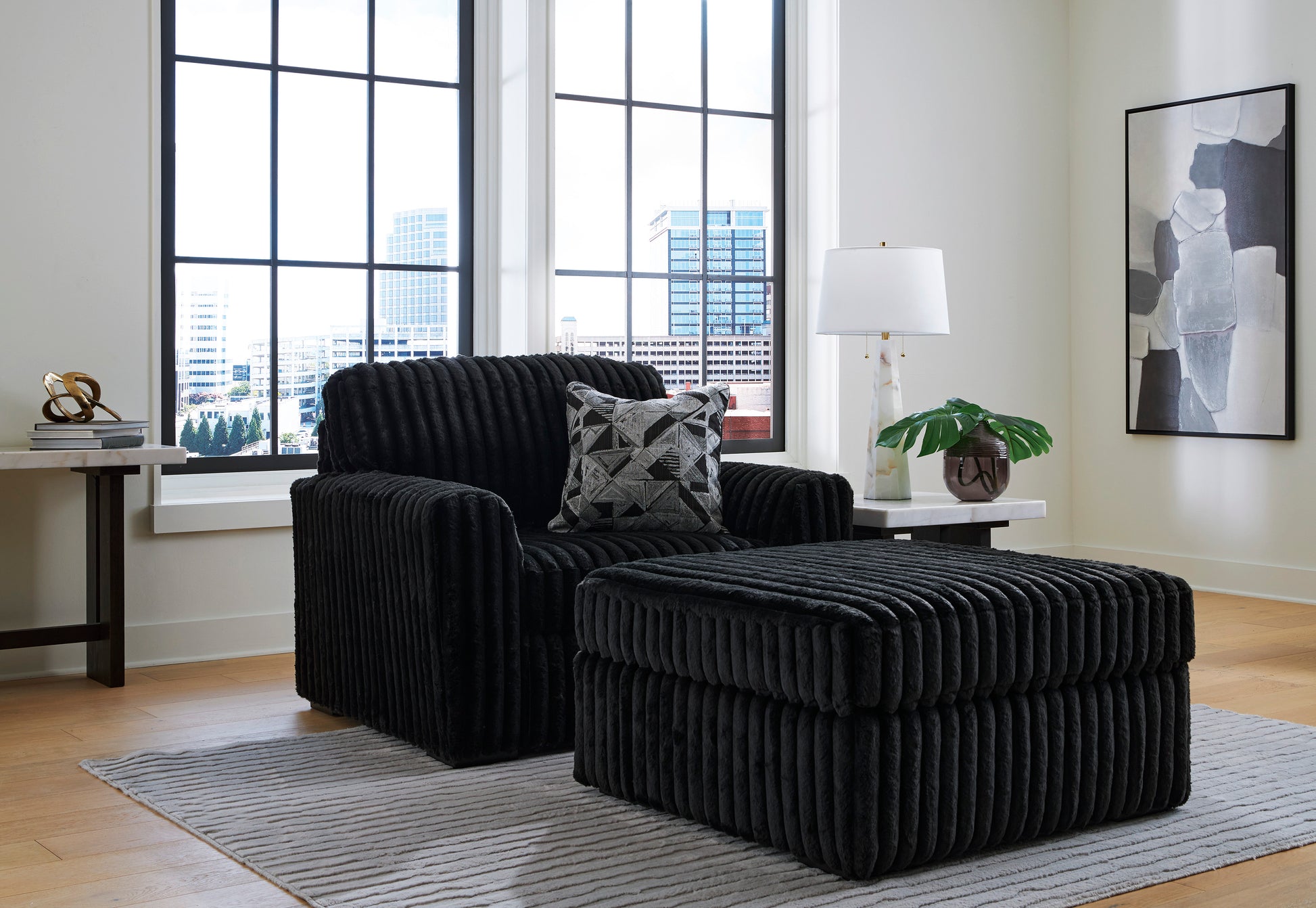 Wrapped in luxuriously soft set jumbo corduroy, the Midnight-Madness Sofa takes cozy and inviting to a higher level. This sumptuous piece is perfect for unwinding after a long day, with exceptionally textured cushions that deliver pure indulgence. Now all you have to do is kick back, sink in and relax.Corner-blocked frame