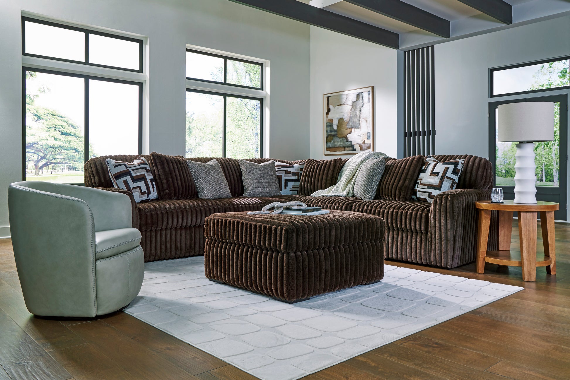 Wrapped in luxuriously soft jumbo corduroy, the Midnight-Madness sectional with chaise takes cozy and inviting to a higher level. The sumptuous piece is perfect for unwinding after a long day, with exceptionally textured cushions that deliver pure indulgence. Now all you have to do is kick back, sink in and relax.