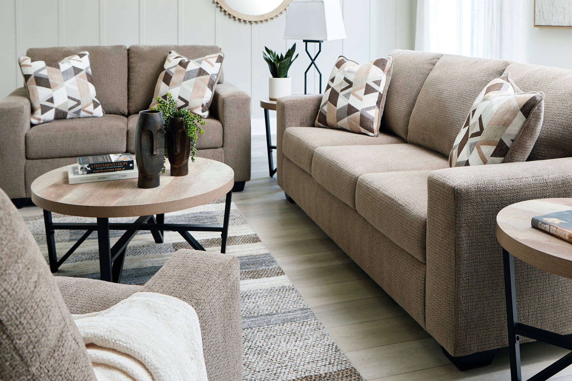 What happens when contemporary design meets plush comfort? Introducing the striking Bristaview sofa set. Supple woven upholstery, ample cushioning and track arms deliver a chic modern vibe, making it the best seat in the house. All that’s missing is you—and your besties.