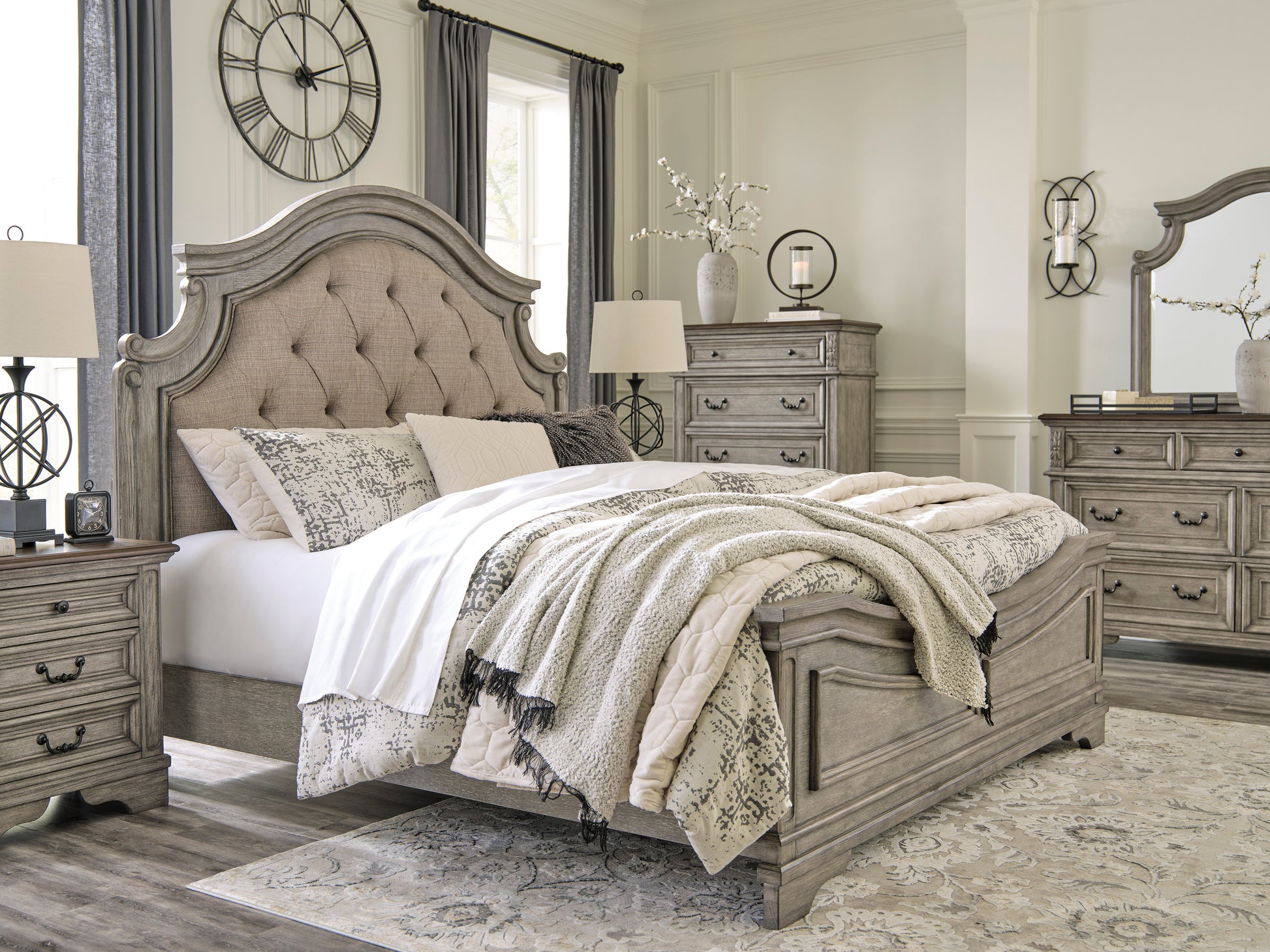• Includes upholstered headboard, footboard and rails