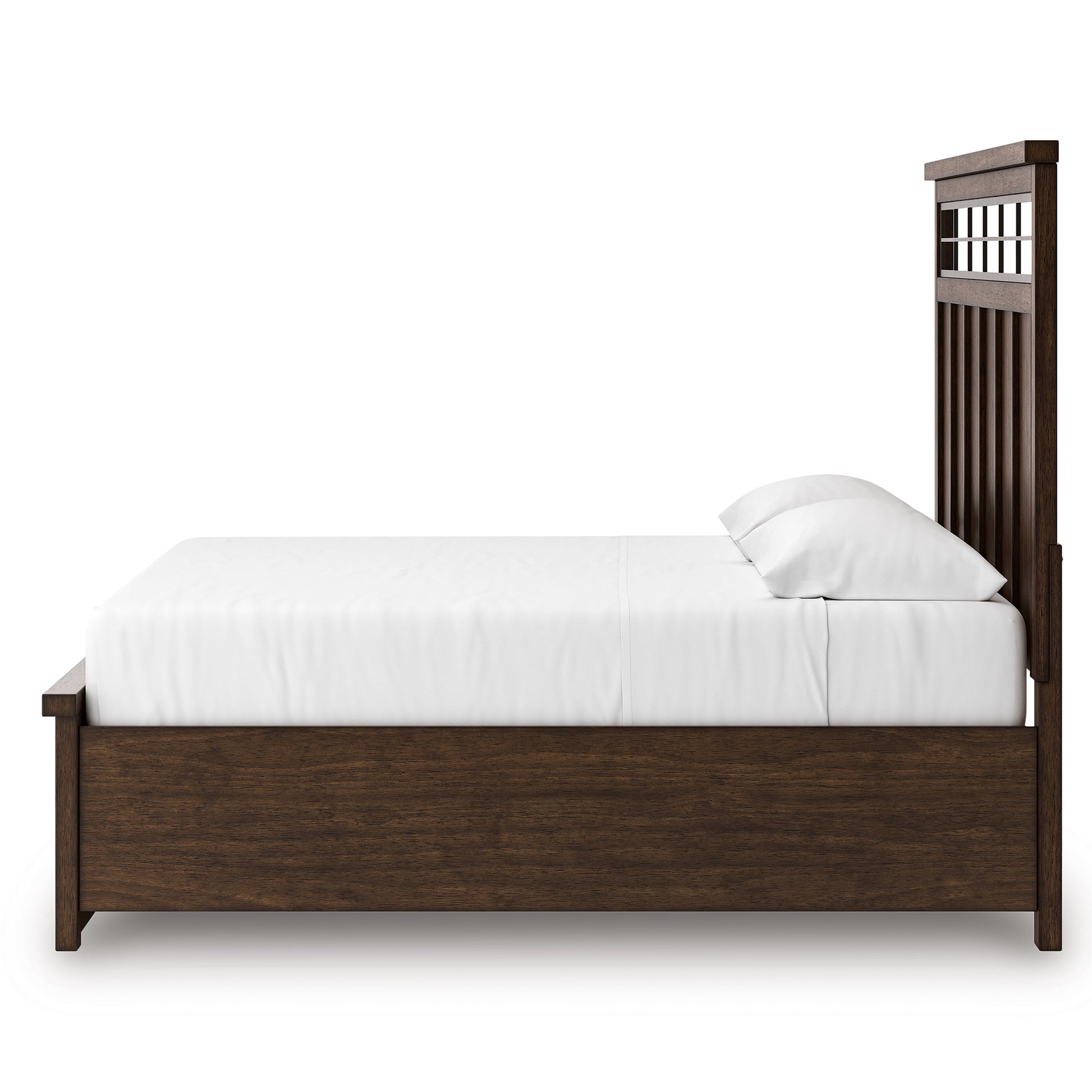 • Includes panel headboard, storage footboard, rails and roll slats