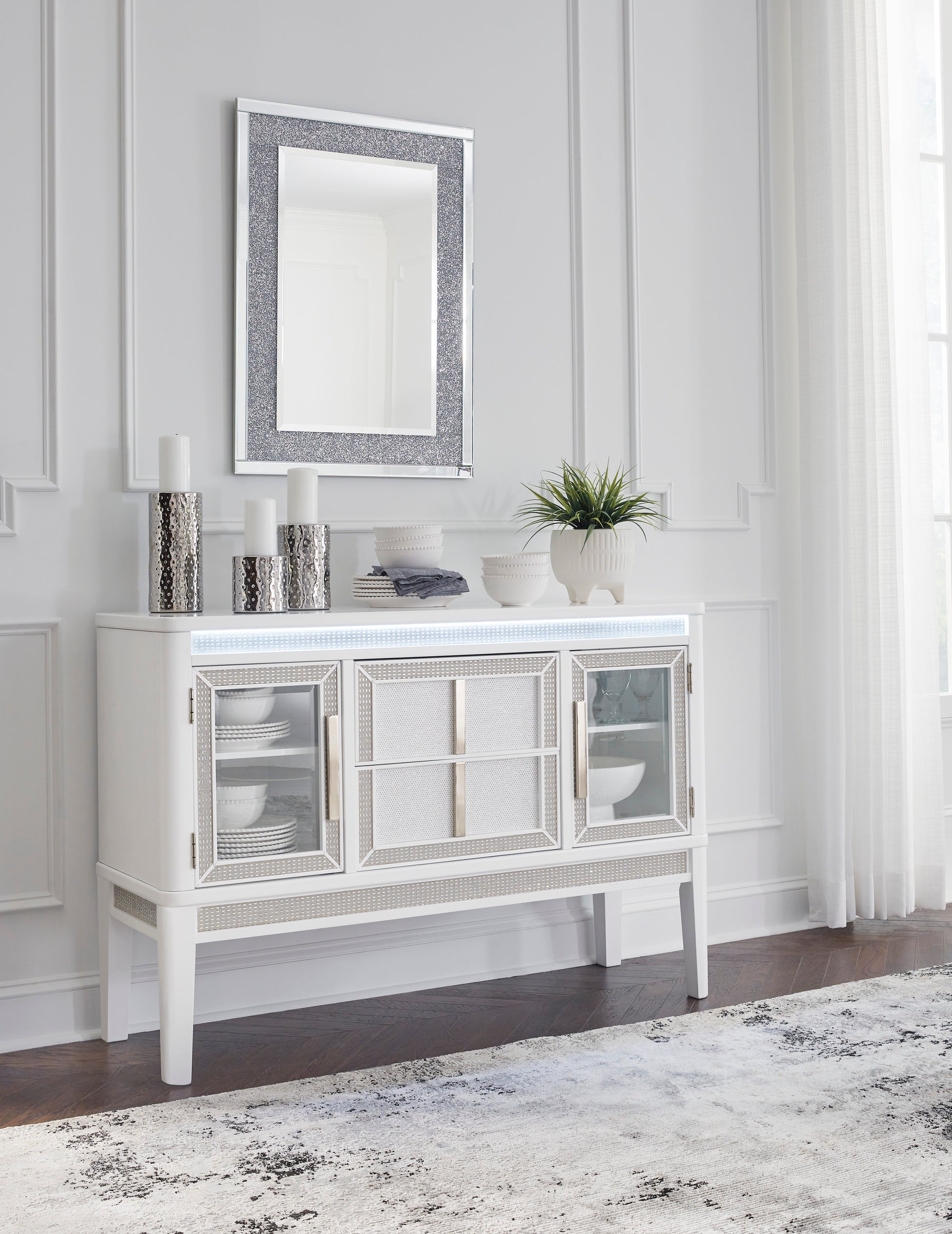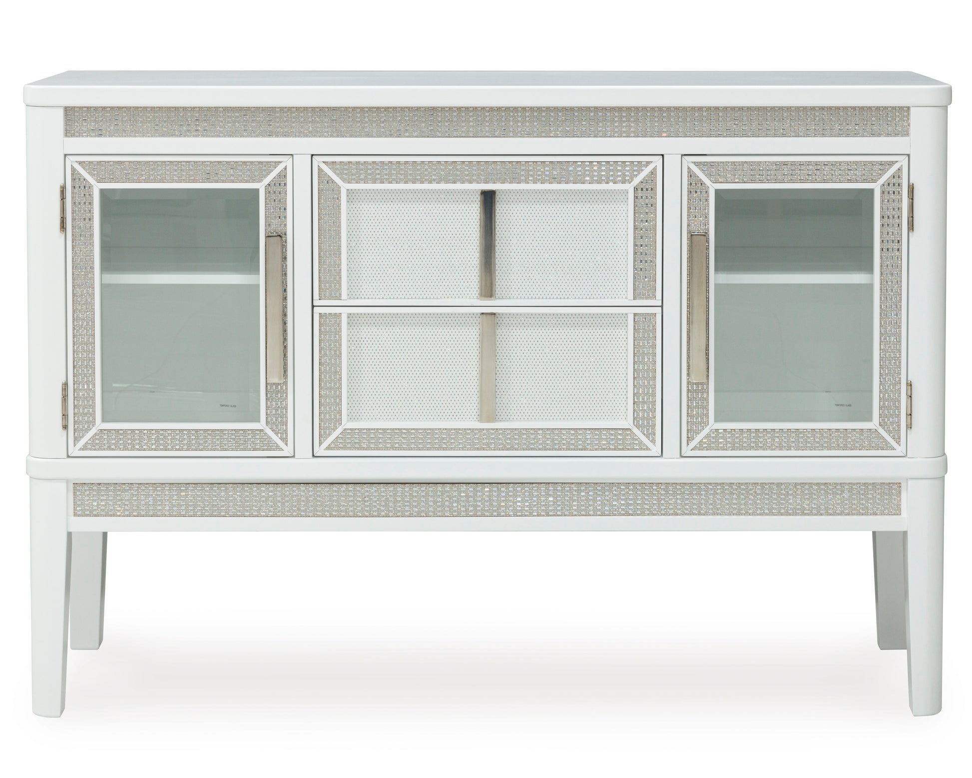 • Tabletops feature rhinestone and textured PVC framing with glass panels