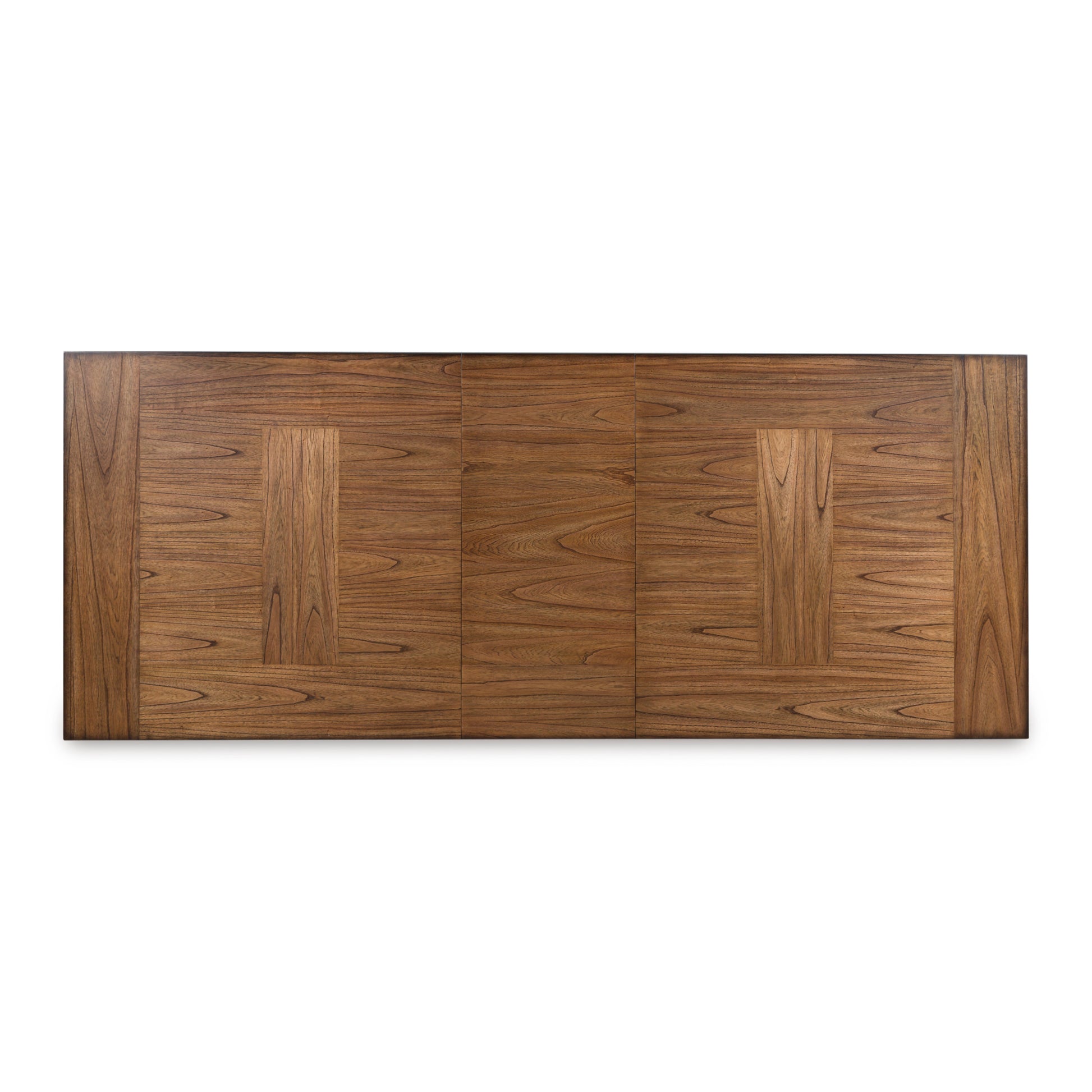 • Two-tone finish (mindi wood veneer inlay top with medium brown finish.