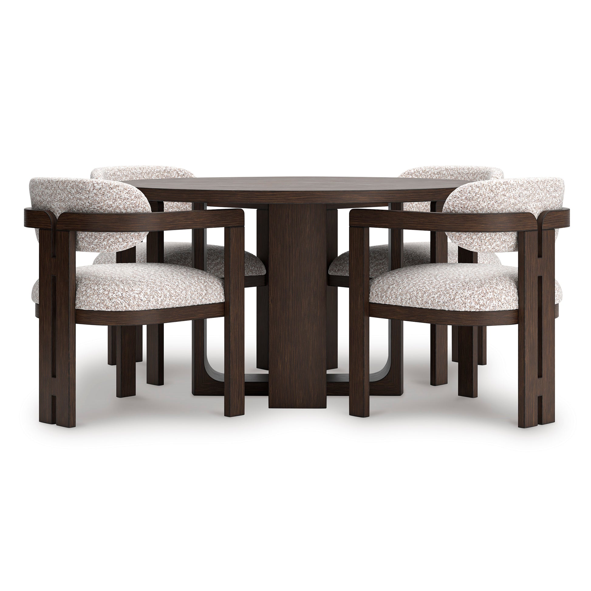 • Solid wood top frame• Tabletop and base made with hardwood solids, mango wood veneer and MDF substrates• Complex, rich warm brown finish• Heavy duty ball-bearing equalizing table glide system• Seats up to 8• Dining chairs sold separately• Assembly required