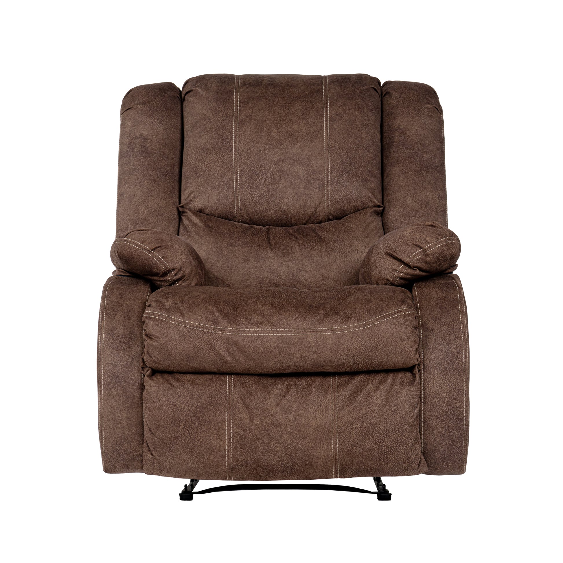 Item: 6039729 Description Prioritize comfort while still making a versatile style statement. Complementing a variety of color schemes, the Brayth rocker recliner's supremely plush seating lines you up for hours of leisure. Its one-pull reclining motion places you in optimal TV watching and naptime positions. If you’re reaching for a relaxed living room atmosphere, this chair is ready to provide. • One-pull reclining motion • Corner-blocked frame with metal reinforced seat • Attached cushions • High-quality foam cushions wrapped in poly fiber • Polyester upholstery • Gentle rocking motion Fabric Details • Body: Polyester (100) %