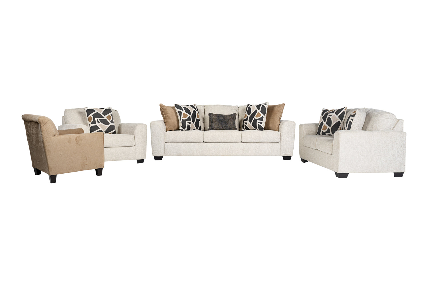 design invites you to sink into the generous cushions. Plush, textured upholstery creates a