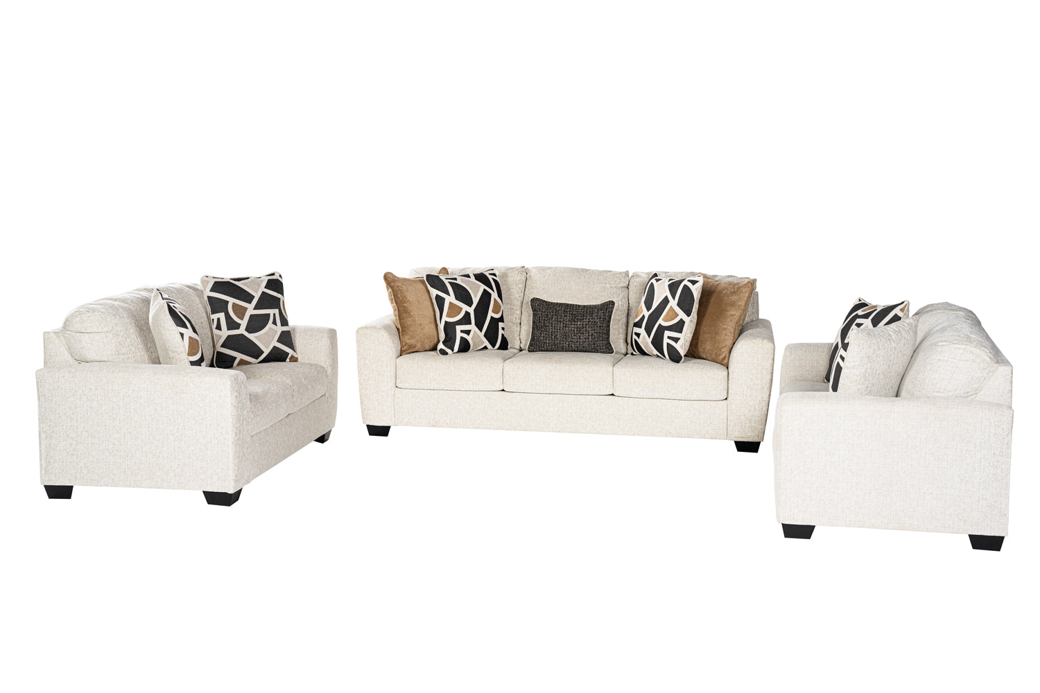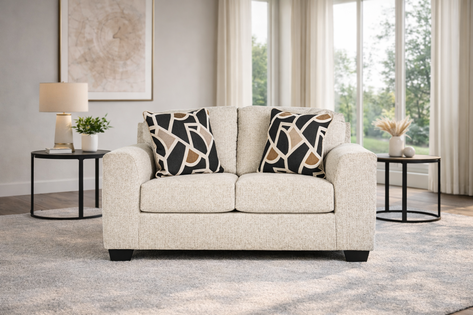 design invites you to sink into the generous cushions. Plush, textured upholstery creates a