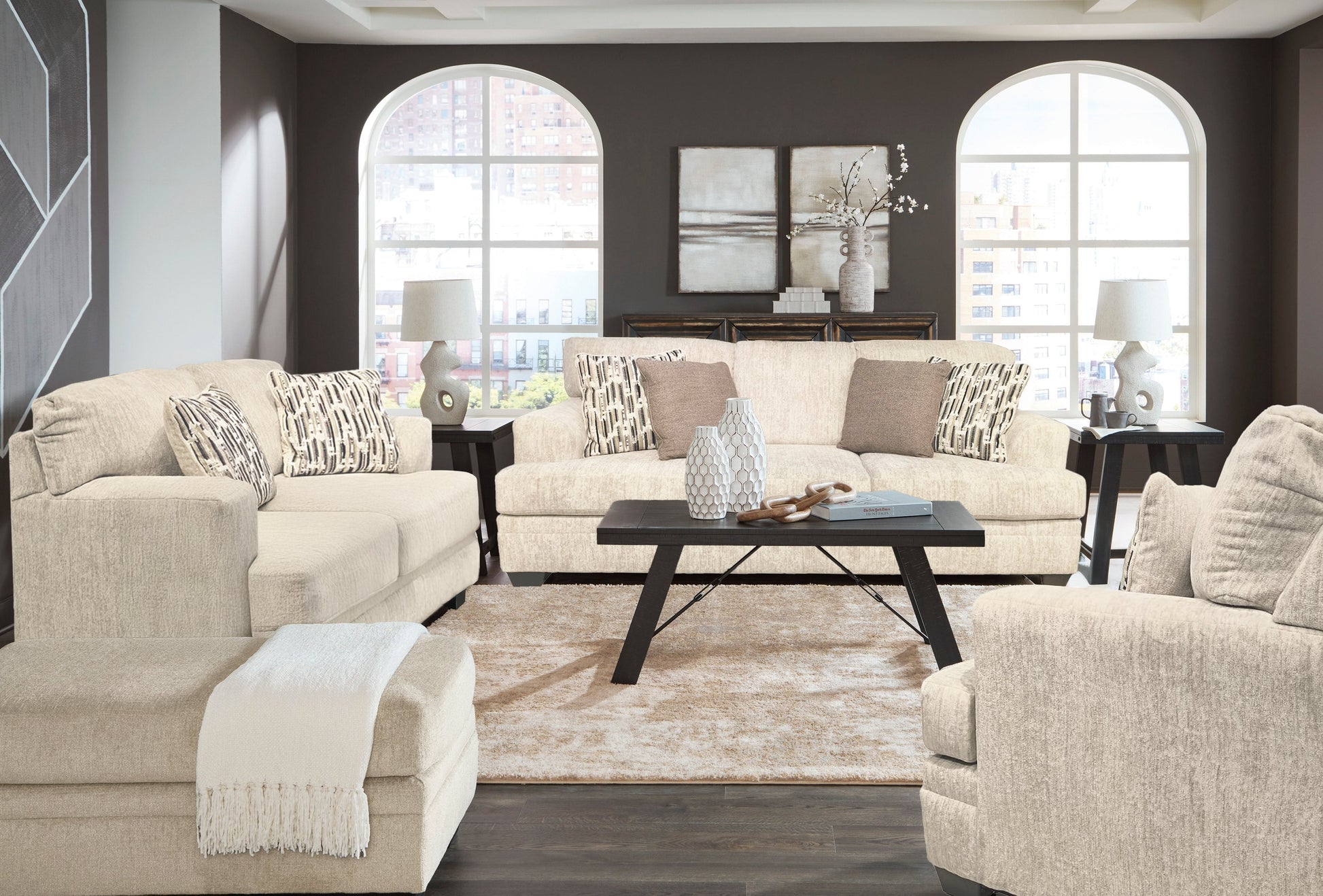 The Delacroix Sofa Set feels every bit as good as it looks. Ultrasoft upholstery enhances your