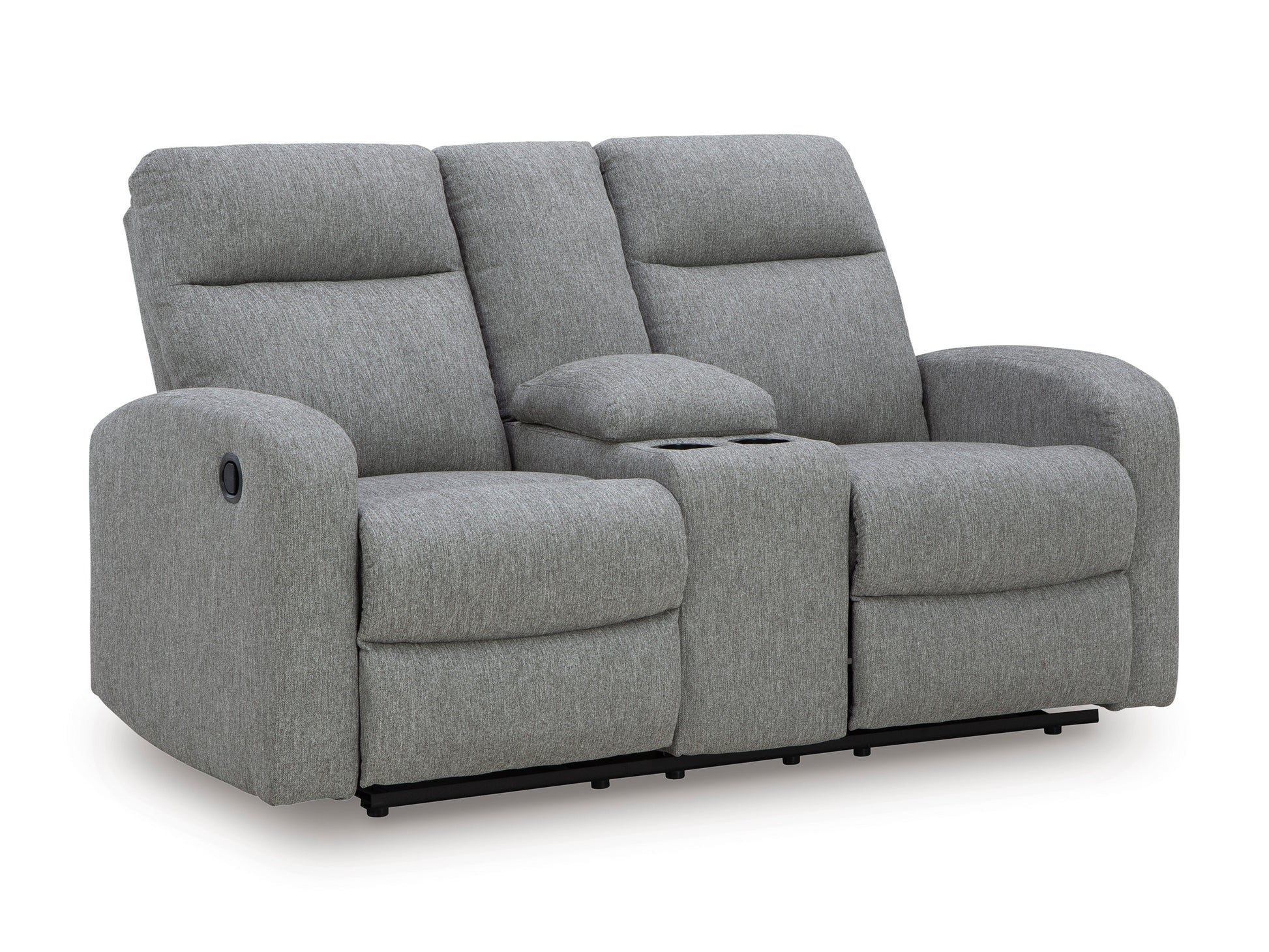 Everyday relaxation made easy. The Moreau Place reclining loveseat takes you back to the basics with simply stylish comfort. With an easygoing neutral hue and classic design, it seamlessly adapts to your living room aesthetic. Pull tab reclining effortlessly takes you from seated to stretched out.Dual-sided recliner; middle seat remains stationary
