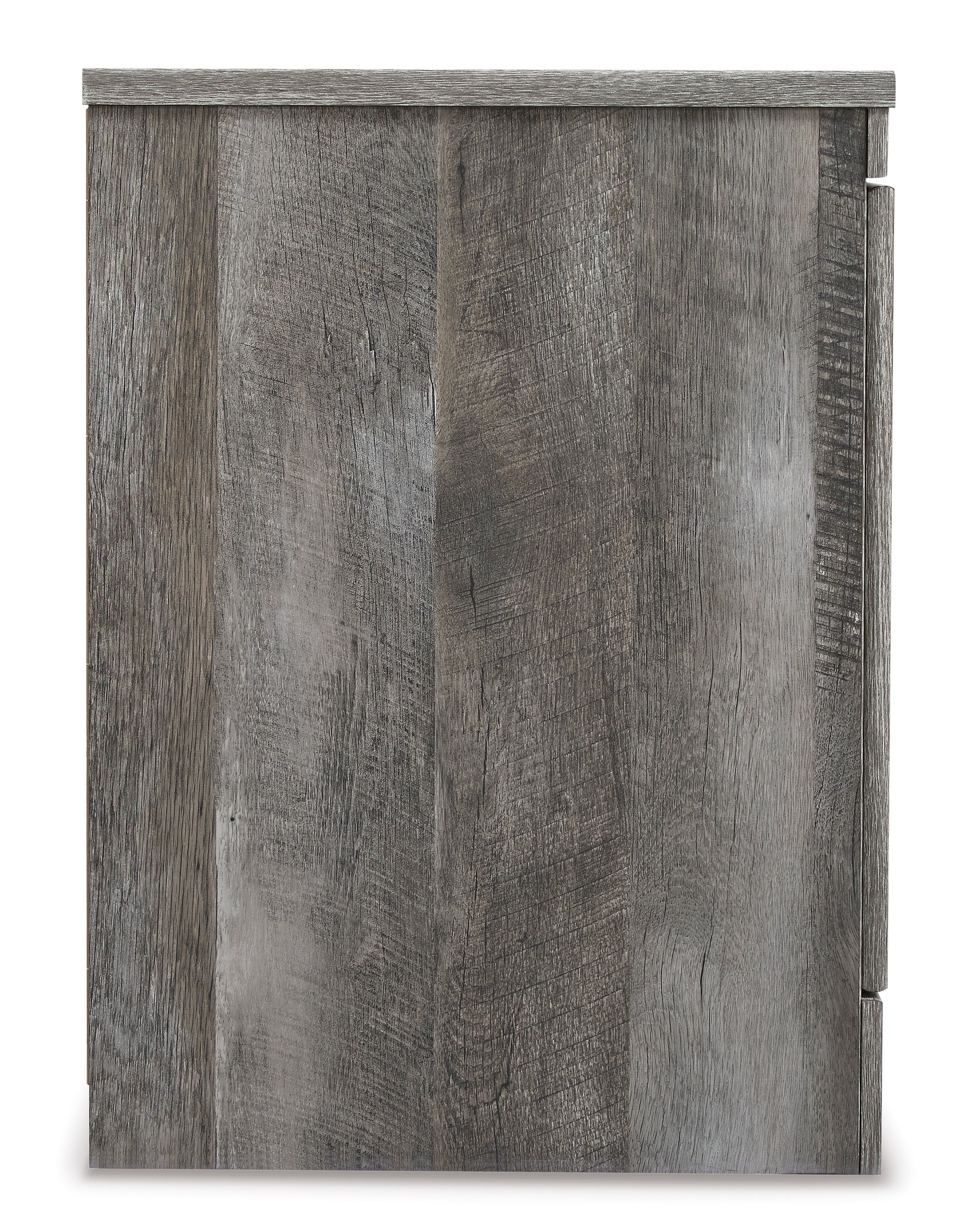 • Rustic gray finish over replicated oak grain