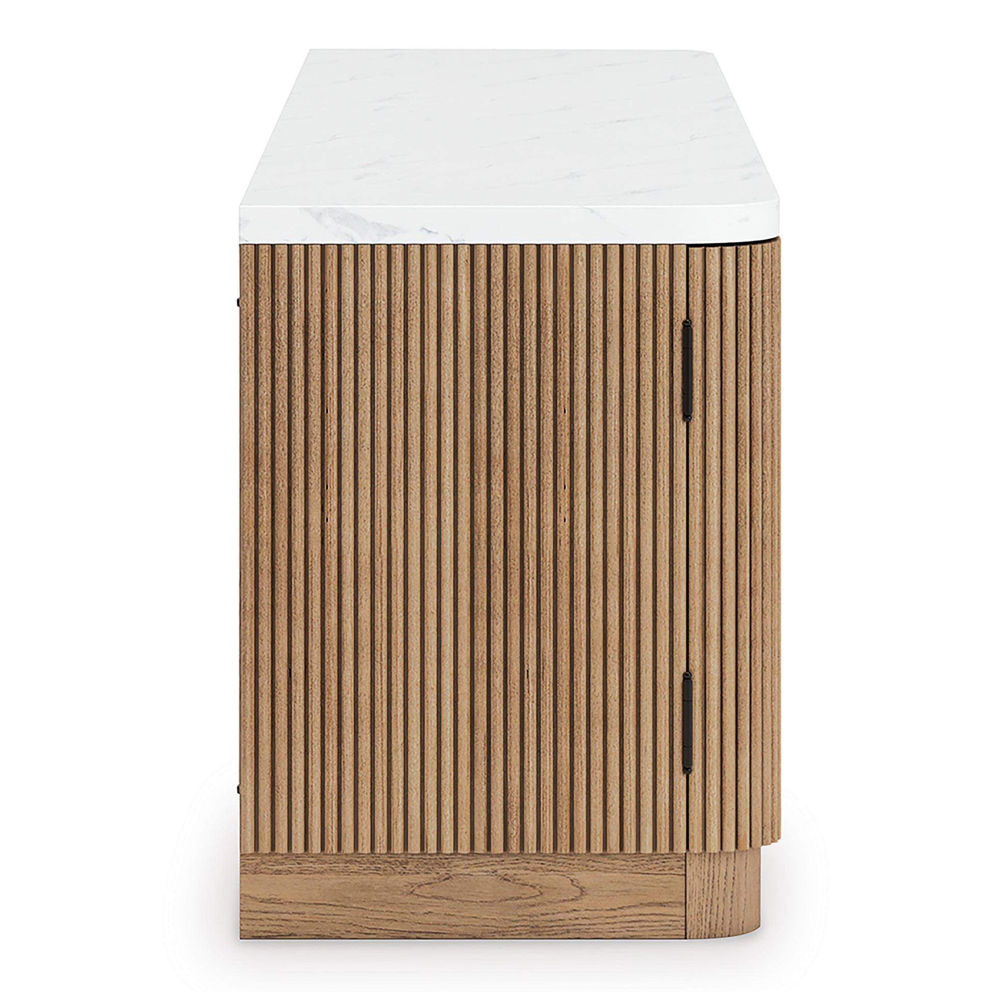 • A light natural finish with a white wax glaze enhances the beautiful wood grain